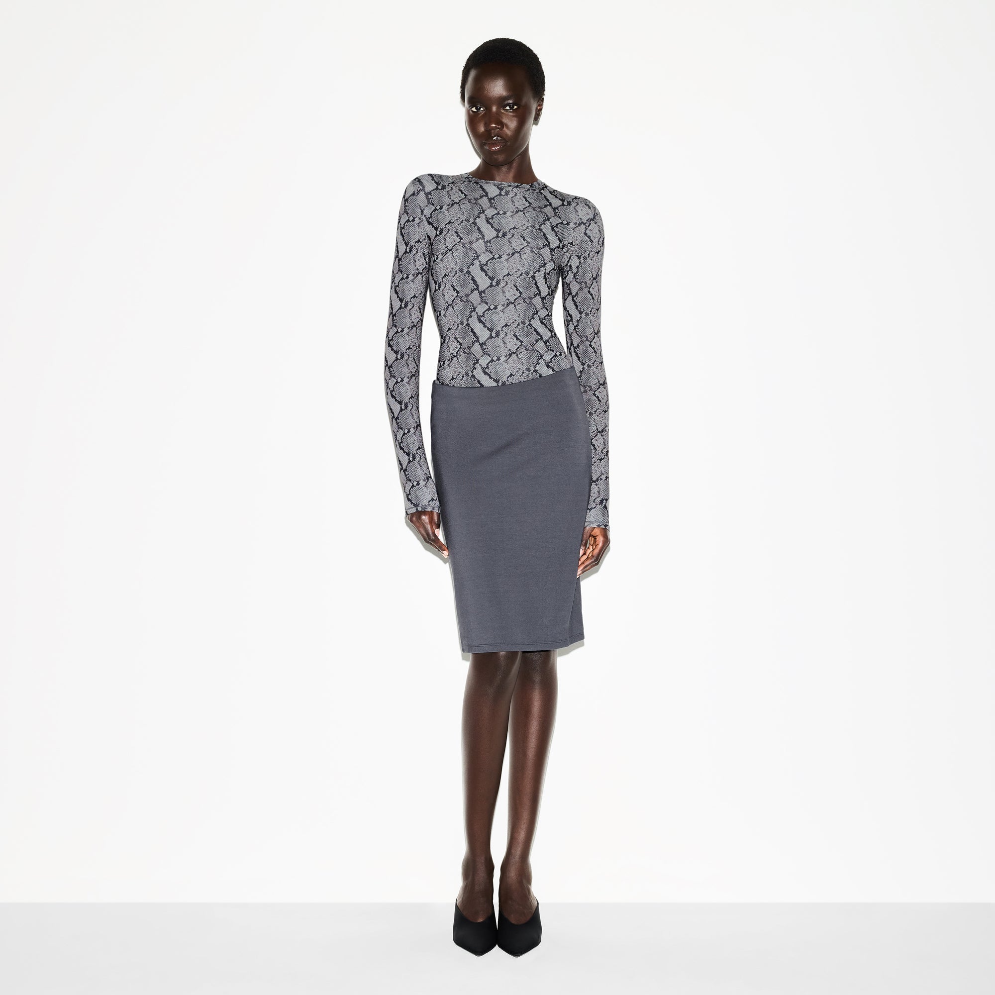 SKIMS FITS EVERYBODY LONG SLEEVE CREW NECK BODYSUIT | SHADOW SNAKE PRINT