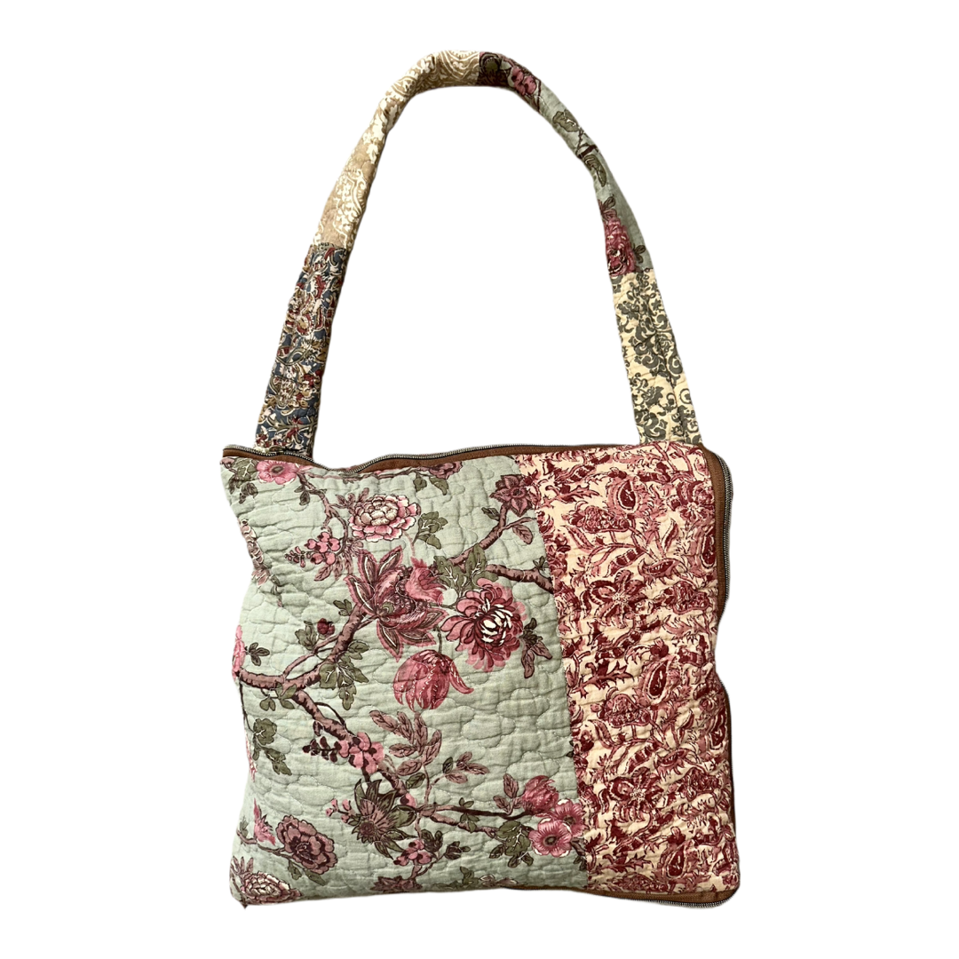Coat N Tote, vintage kapitone kumaşlardan özenle üretilmiş, patchwork formunda düzenlenen çiçeksi ve bezemeli motiflerle dikkat çeken çok yönlü bir tasarımdır. Her parça dünya genelinden toplanan vintage kumaşların benzersiz dokusunu ve tarihini yansıtan ustalıkla bir araya getirilmiştir.