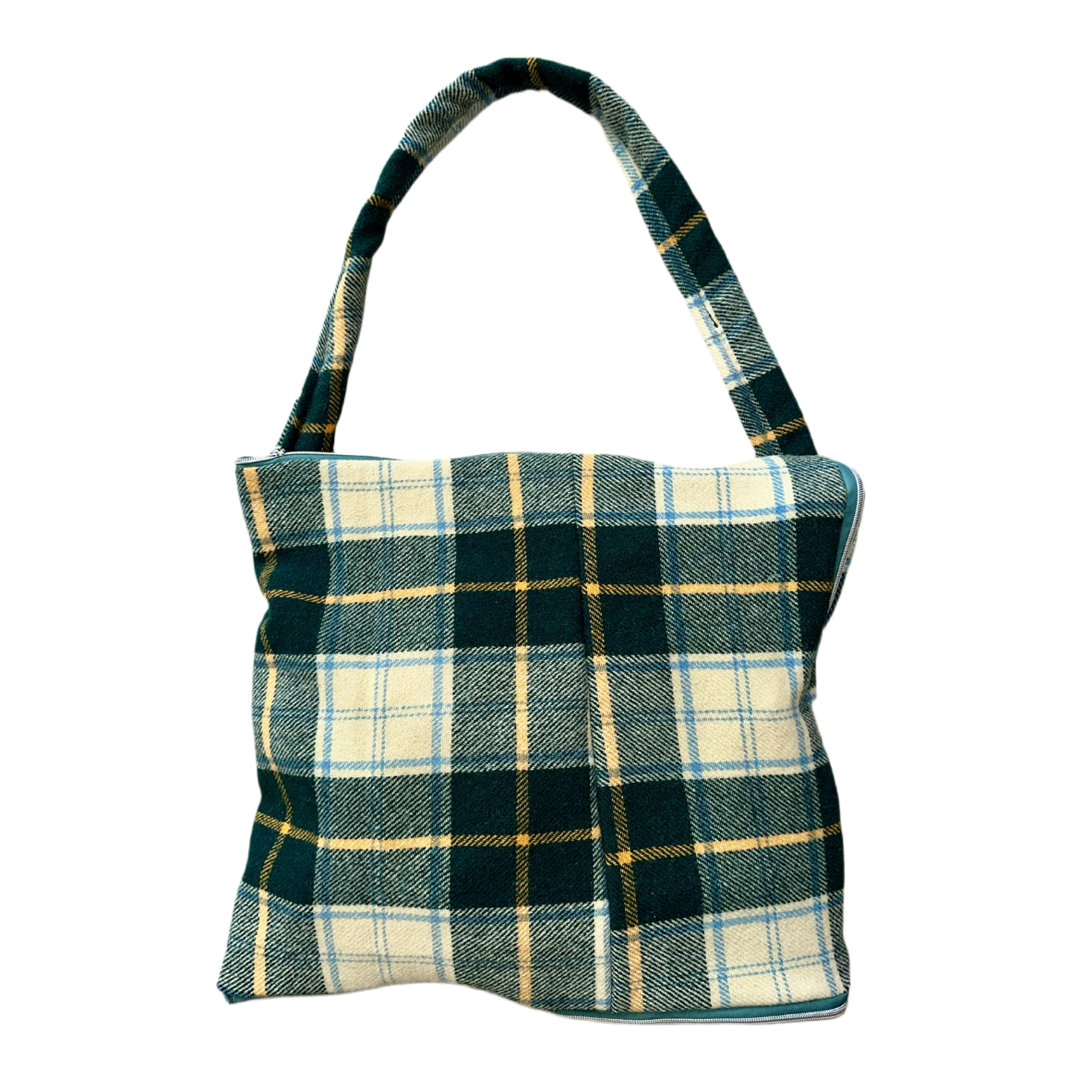 Vintage yün kumaştan üretilmiş bu trench tote, dengeli ekose deseni ve seçkin işçiliğiyle öne çıkar. Dünya genelinden özenle temin edilmiş vintage kumaşlardan yapılan bu parça her biri benzersiz bir geçmiş barındırır.