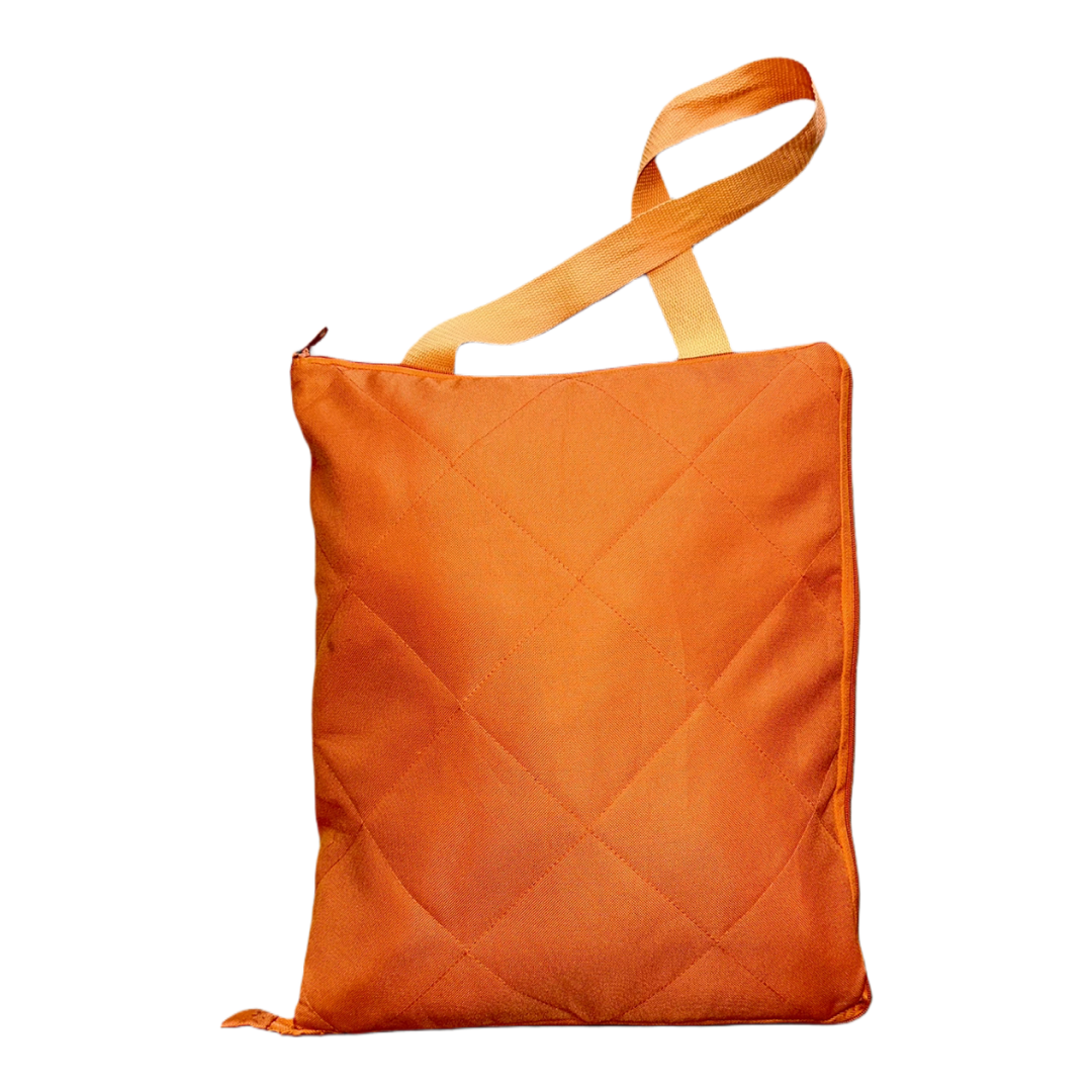Baklava desenli kapitone dokusu giyside yapı ve ritim oluştururken, canlı turuncu ile derin mavi fermuar arasındaki kontrast modernist bir estetik sunar. Vintage kumaşlar özenle seçilmiş olup her parçanın dokusu ve rengi küçük farklılıklar gösterebilir; bu farklılıklar ürünün karakterinin bir parçasıdır.