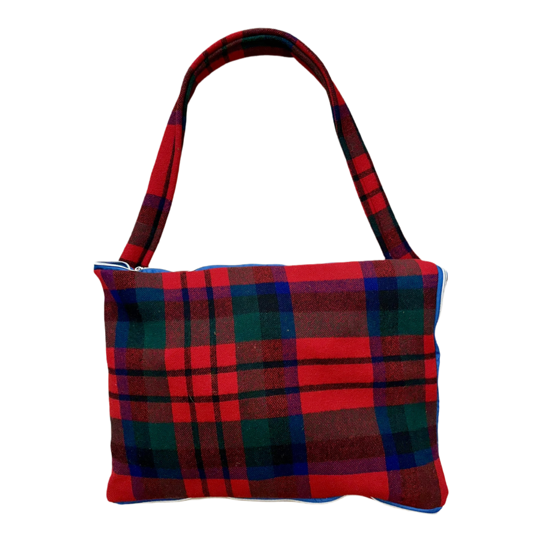 Canlı kırmızı, yeşil ve derin mavi şeritlerin sıcak deve tüyü panellerle birleşimi, rustik ve zamansız bir estetik dengesi oluşturur. El işçiliği ve vintage kumaş seçimi, her parçaya özgün bir karakter kazandırır; renk, doku veya desen yerleşiminde ince farklılıklar ürünün doğasının bir parçasıdır.