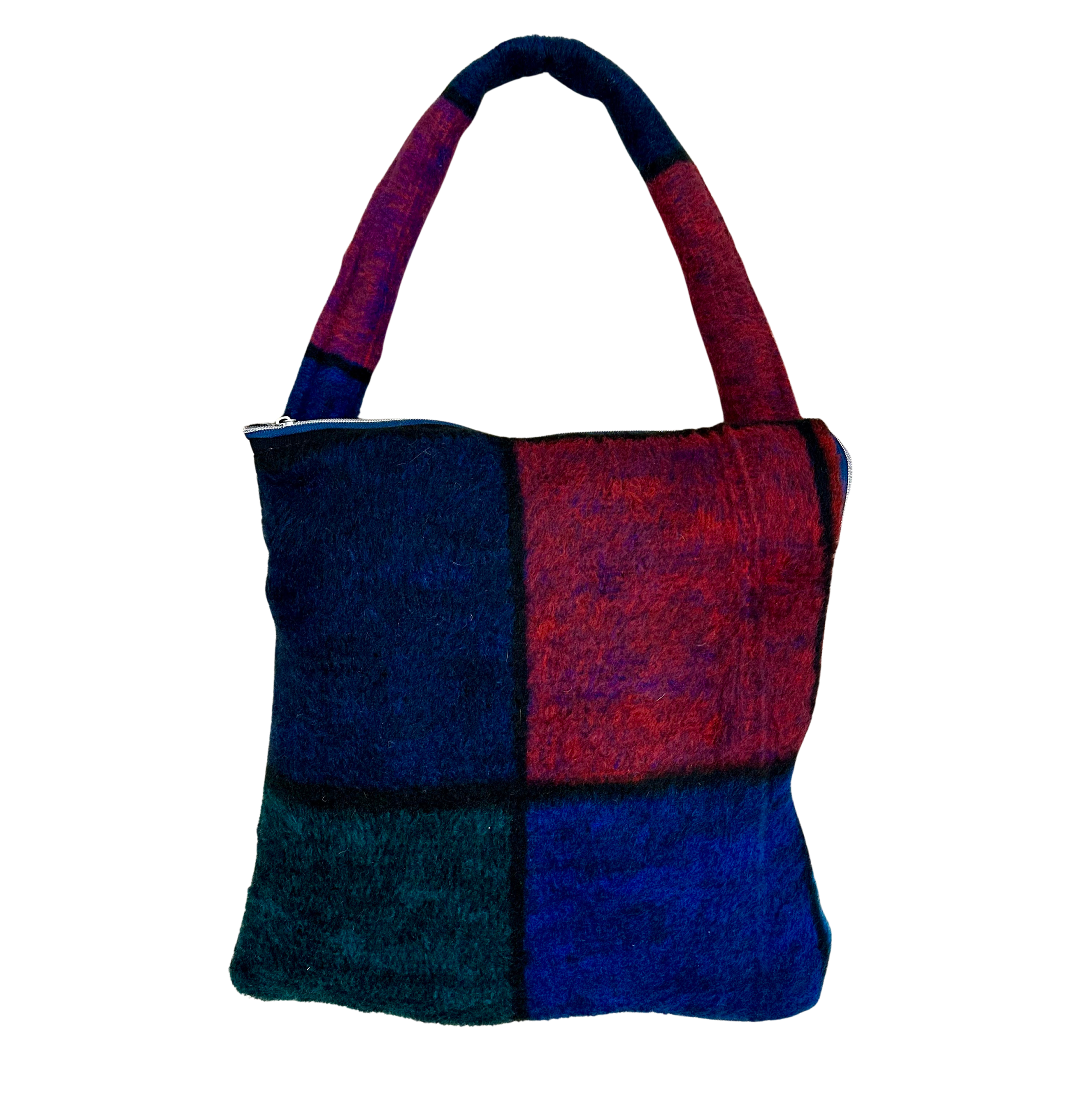 Vintage yumuşak havlı kumaştan üretilen bu palto, Coat N Tote koleksiyonunun özgün parçalarından biridir. Yakut, menekşe, deniz yeşili, çivit ve gece yarısı mavisinin derin karelerini bir araya getirerek atmosferik ve melankolik bir estetik sunar.