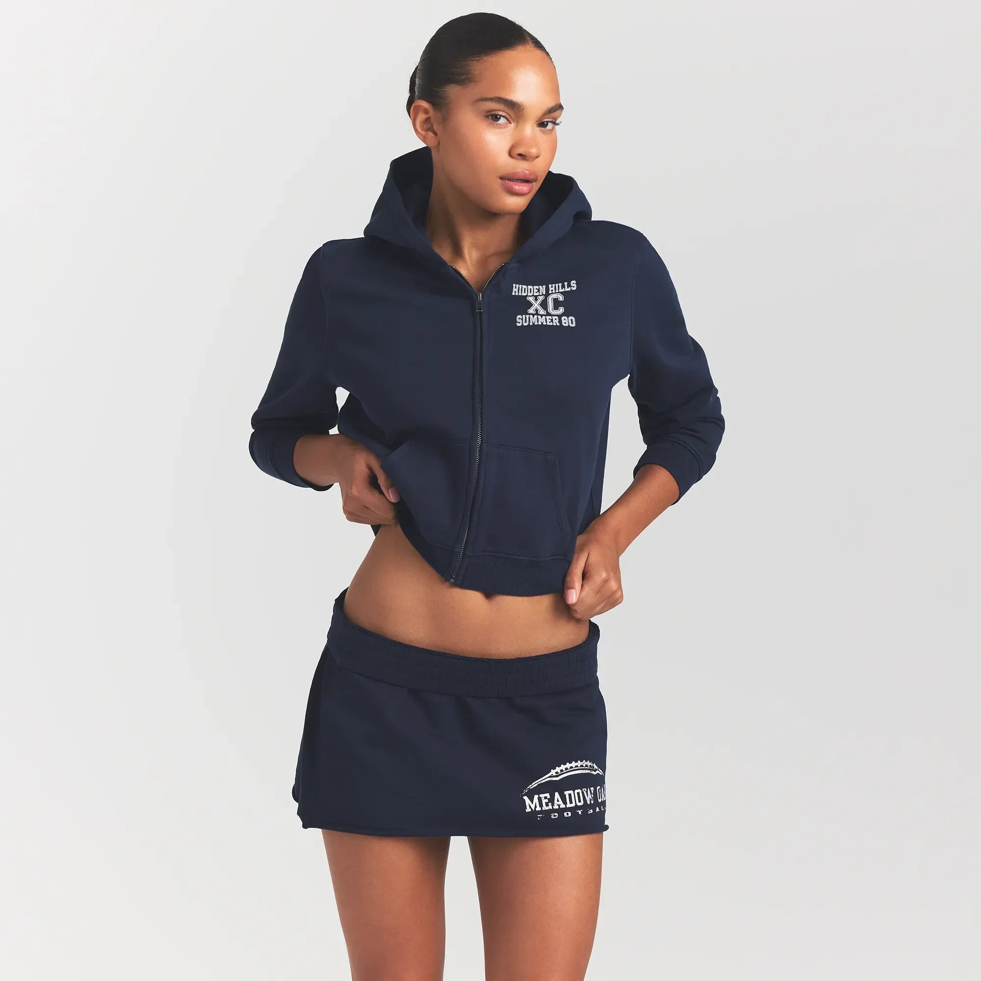 SKIMS BOYFRIEND FLEECE MINI SKIRT | NAVY MEADOW OAK