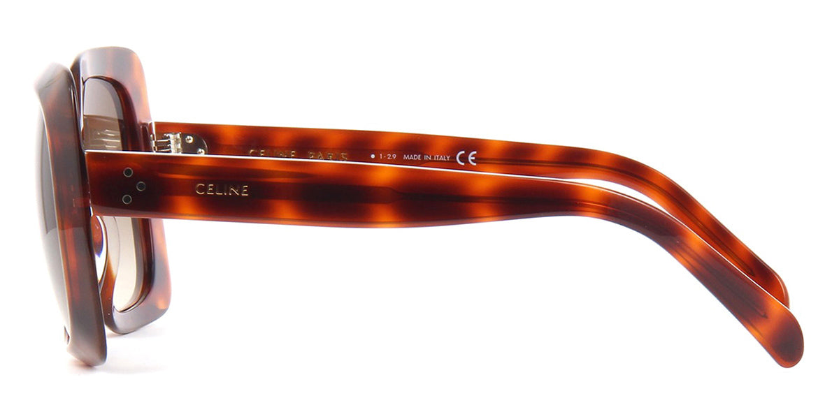 Celine CL40096I 55F model kare güneş gözlüğü, koyu havana çerçeve ve kahverengi degrade lensleriyle şıklığı ön plana çıkarıyor. Celine, lüks modanın öncüsü olarak, zarif tasarımları ve mükemmel işçiliğiyle dikkat çekiyor.