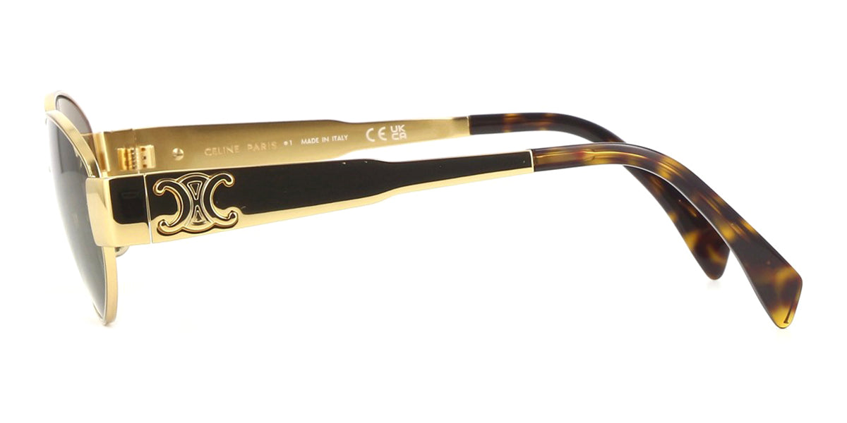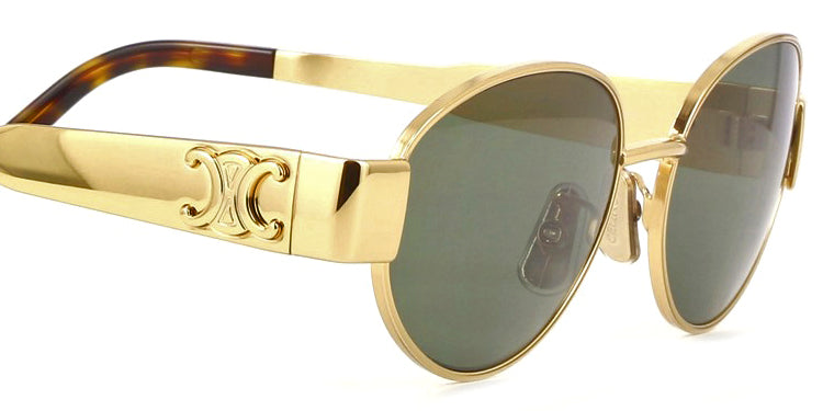 Celine Metal Triomphe CL40235U 30N, şık metal sarı altın çerçeveye sahip, krem rengi detaylarla bezeli ve yeşil lensli yuvarlak bir güneş gözlüğüdür. Celine, moda dünyasını yeniden tanımlayan, zarafet ve sofistike tarzı simgeleyen küresel bir lüks markadır.
