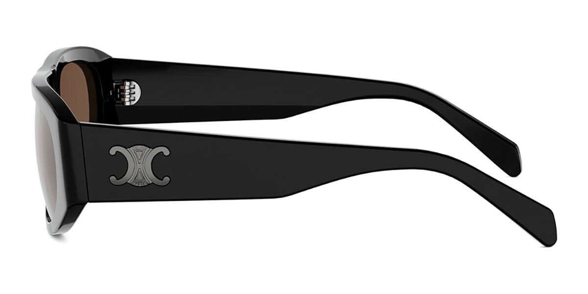 CELINE Triomphe CL40334U 01E, şık bir tasarıma sahip dikdörtgen Celine güneş gözlüğüdür. Siyah ve koyu rutenyum logolu çerçevesi ile kahverengi lensleri, zarif bir görünüm sunar.