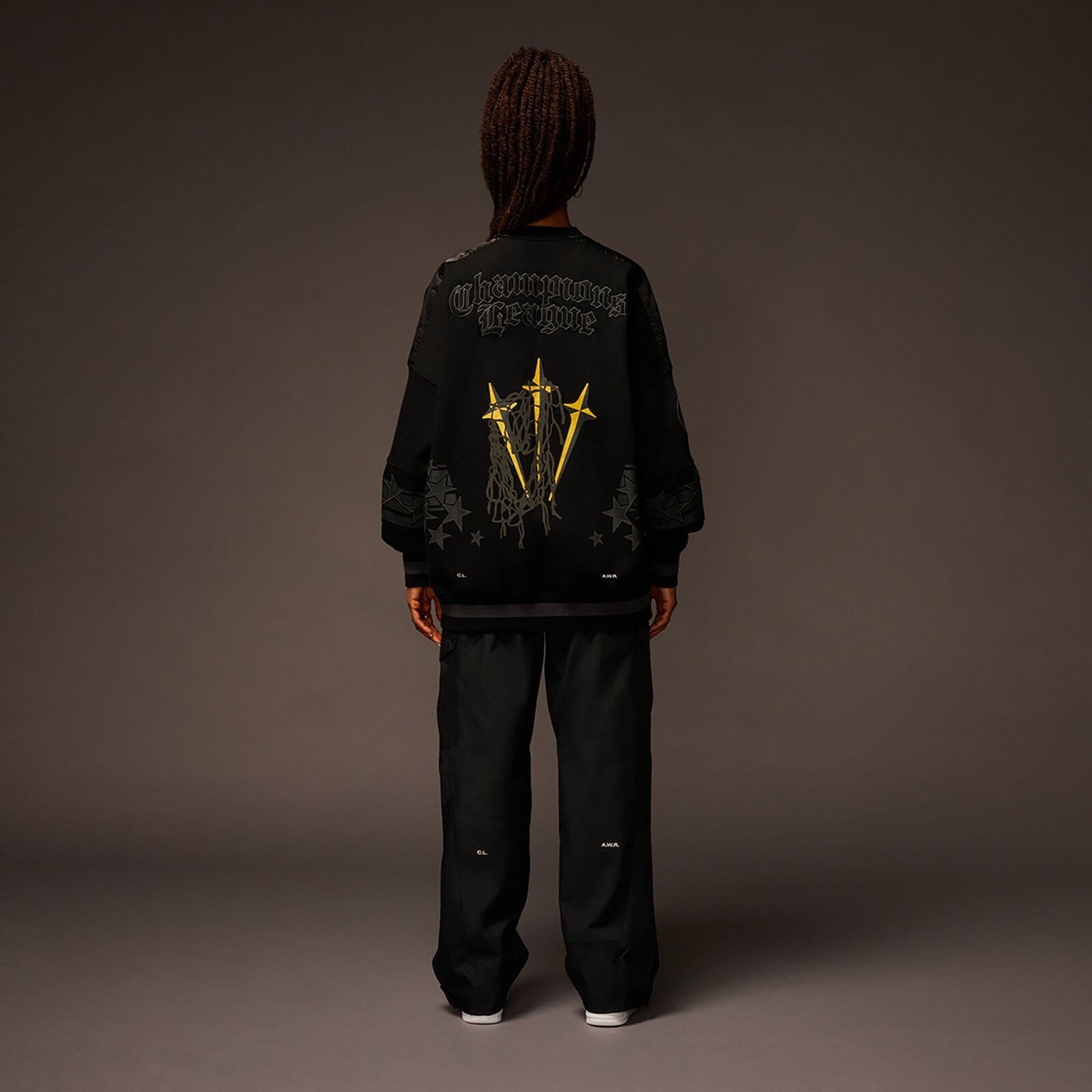 Büyük boy bisiklet yaka tasarımı ile dikkat çeken bu ürün, omuz ve alt kollarda saten aplike detaylarıyla şıklık sunuyor. Ön, arka ve kollarda yer alan kabartmalı baskı, serigrafi baskı ve nakışlı grafikler ile estetik bir görünüm elde edilmiştir.