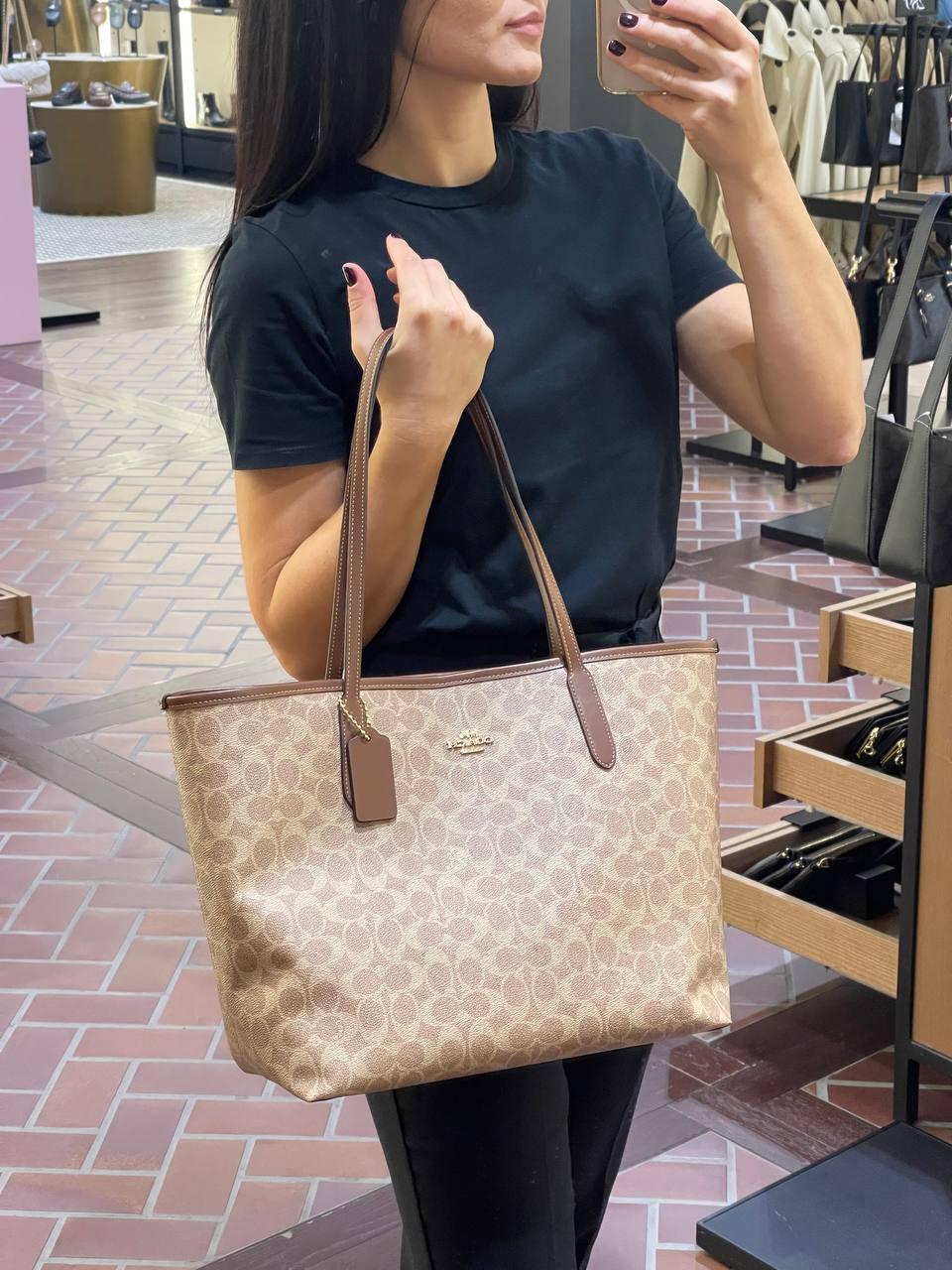 Coach City Tote Bag In Signature – Gold/Tan/Brown