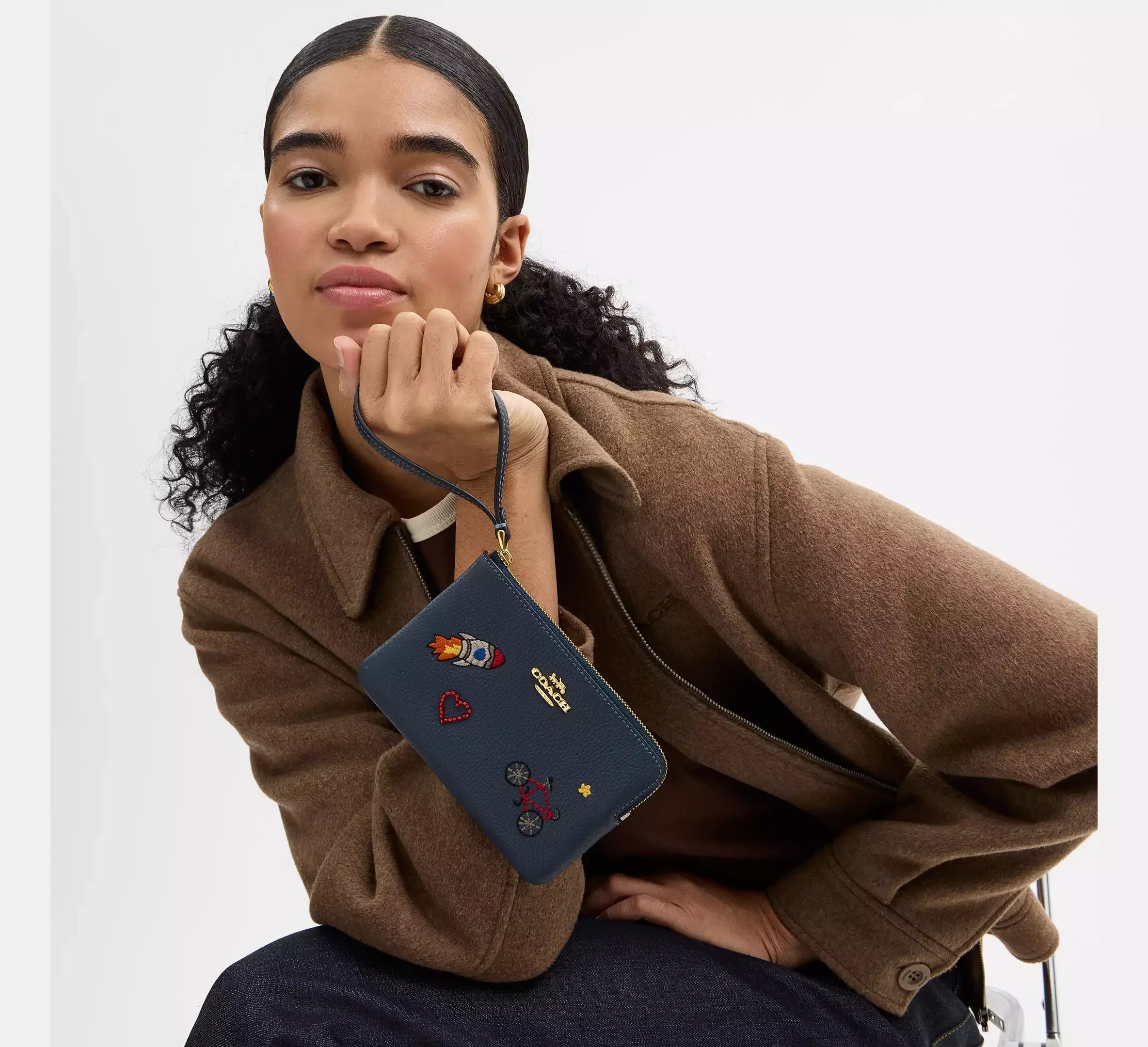 Coach Corner Zip Wristlet – Gold/Dark Denim
