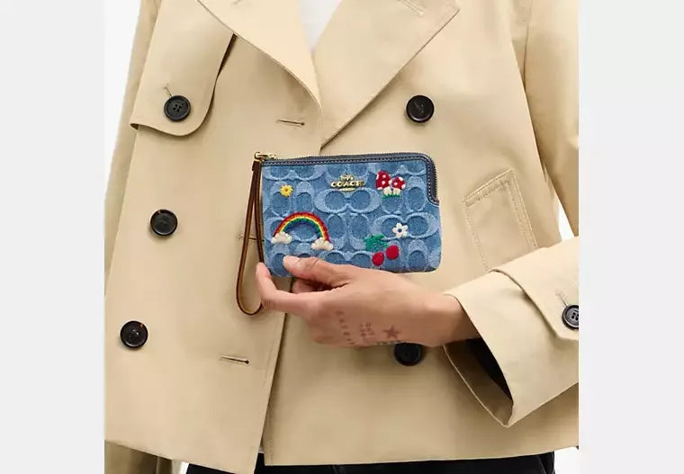Coach Corner Zip Wristlet In Signature Denim – Gold/Indigo Multi
