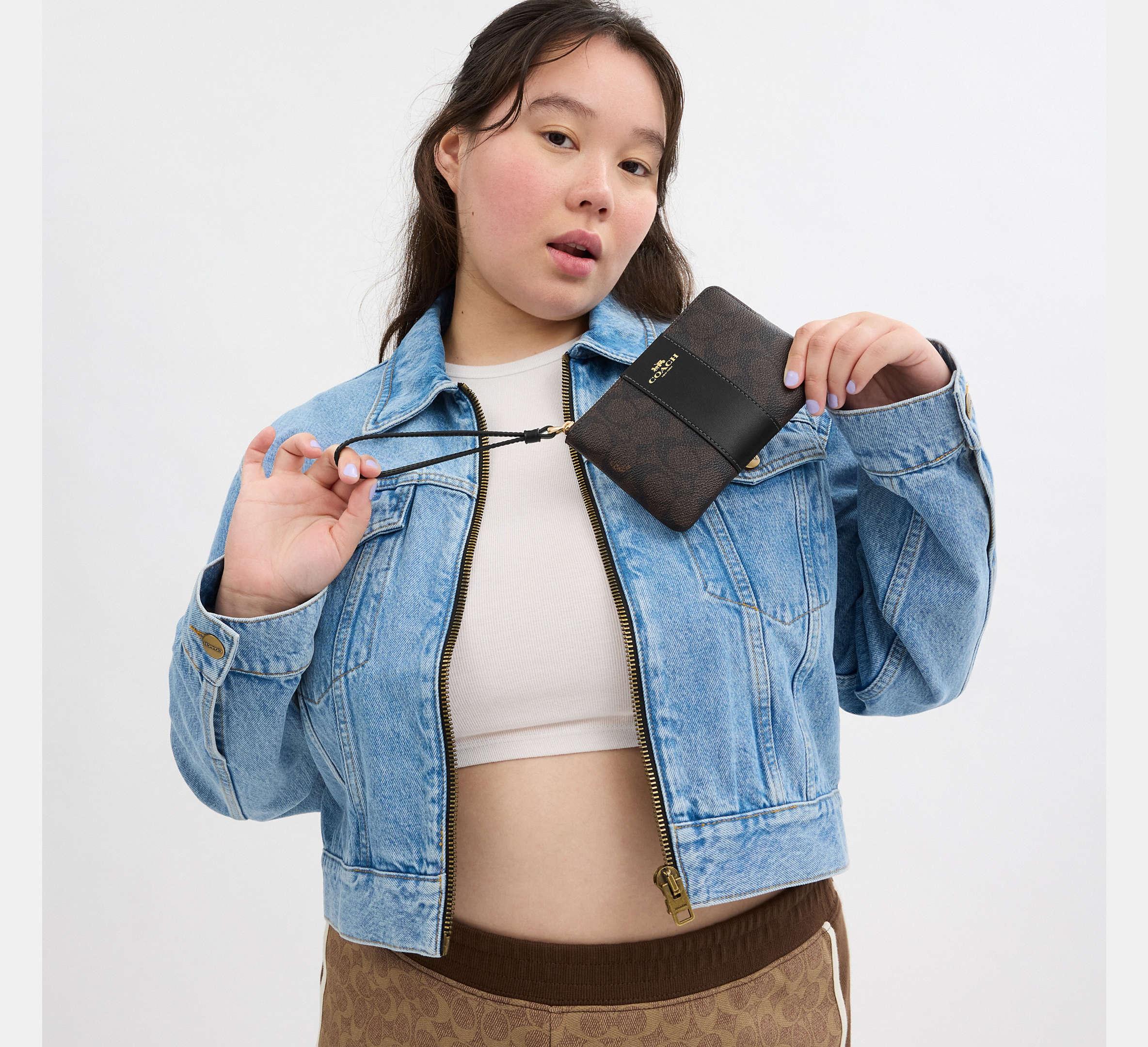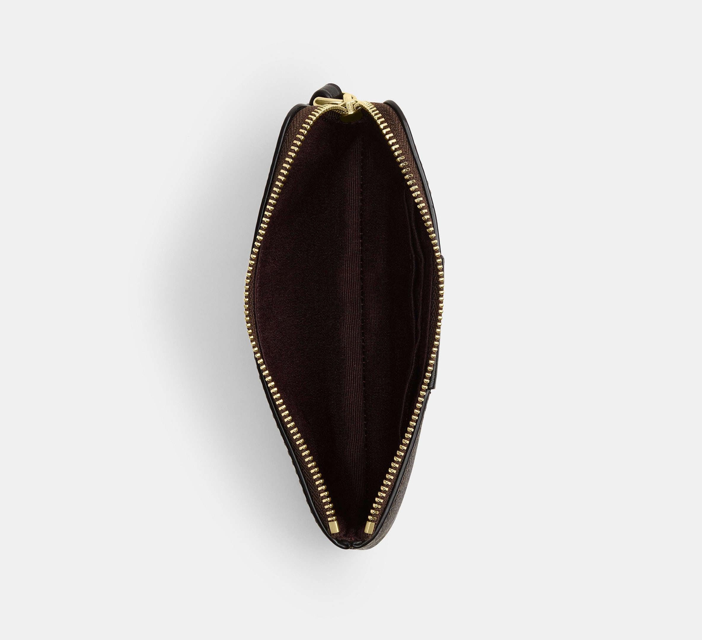 Coach Corner Zip Wristlet In Signature With Stripe – Gold/Walnut/Black