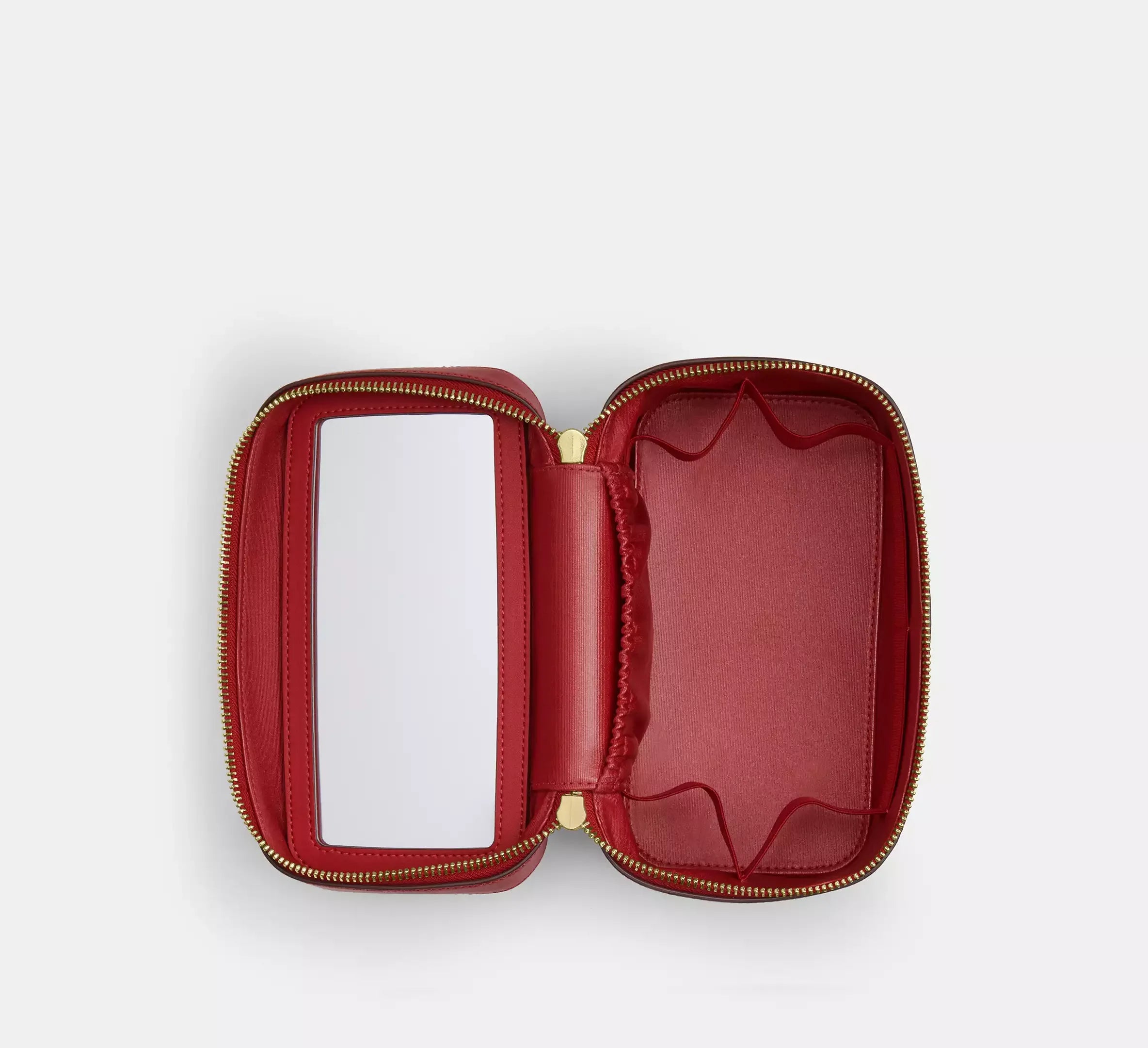 Coach Cosmetic Case In Signature With Floral Print – Gold/Walnut/True Red
