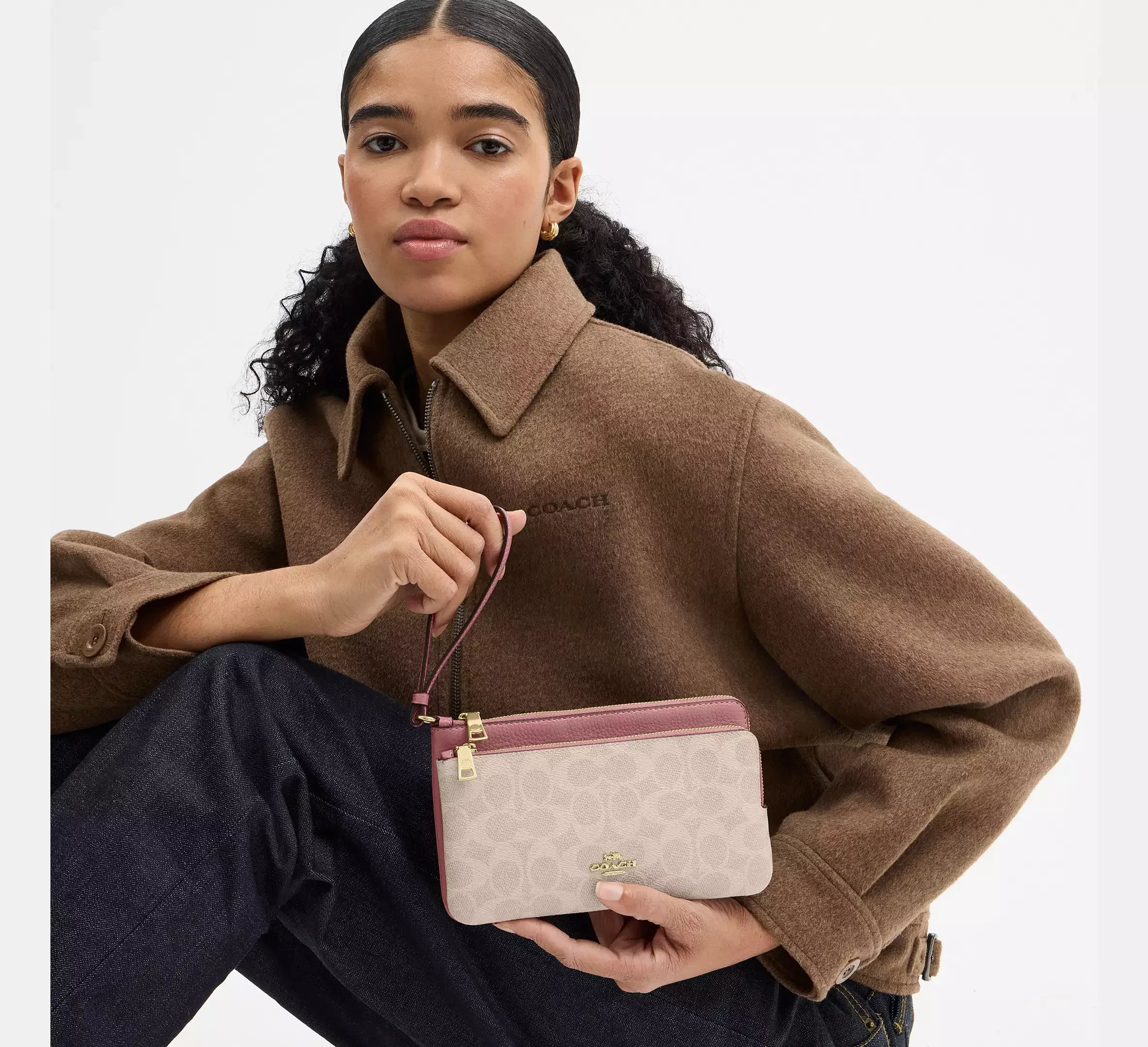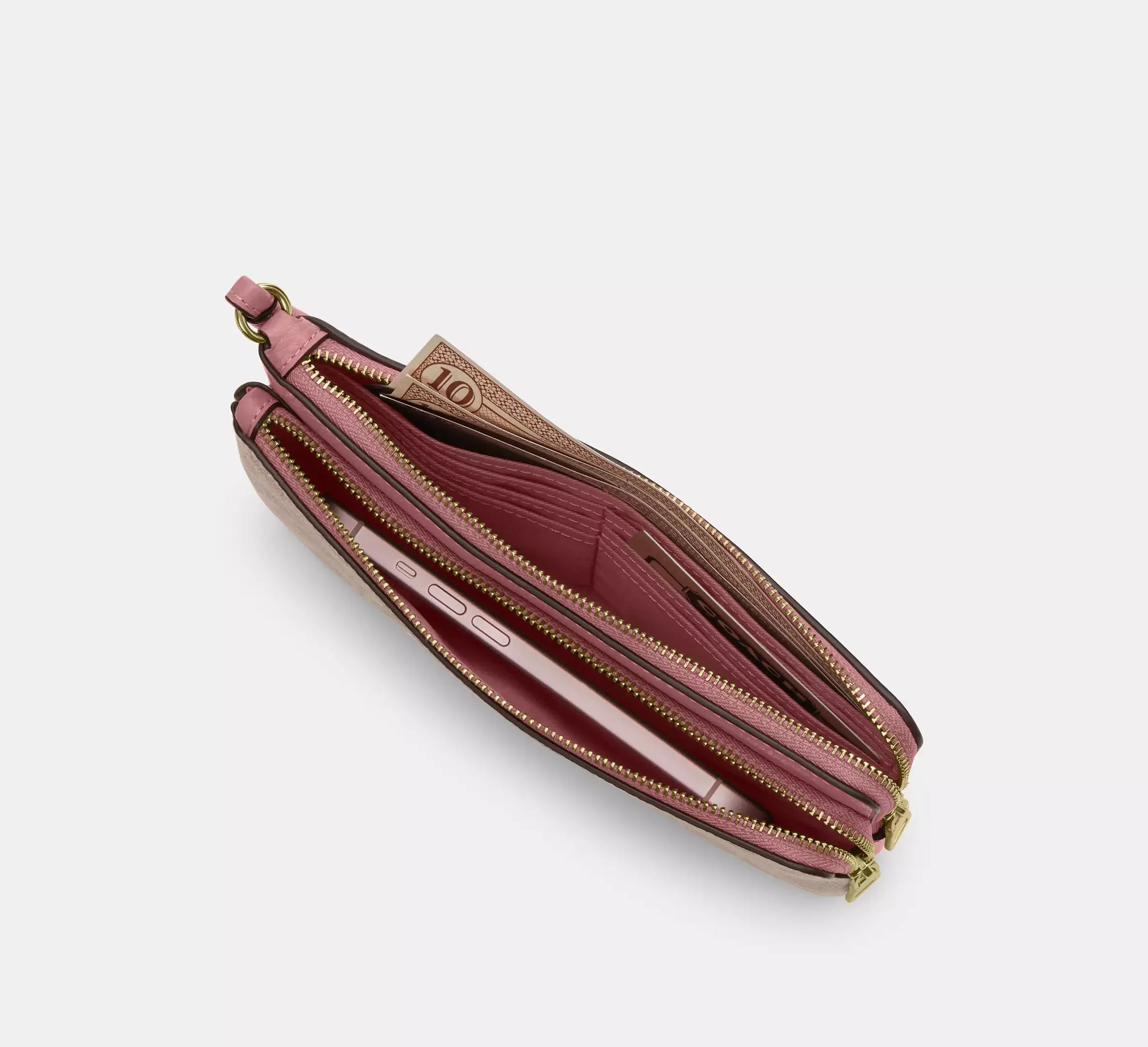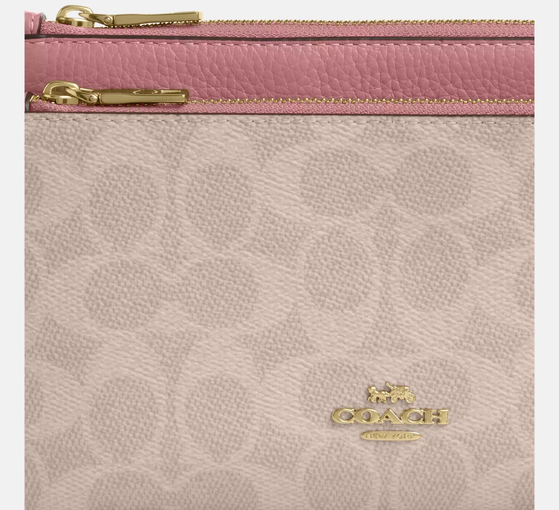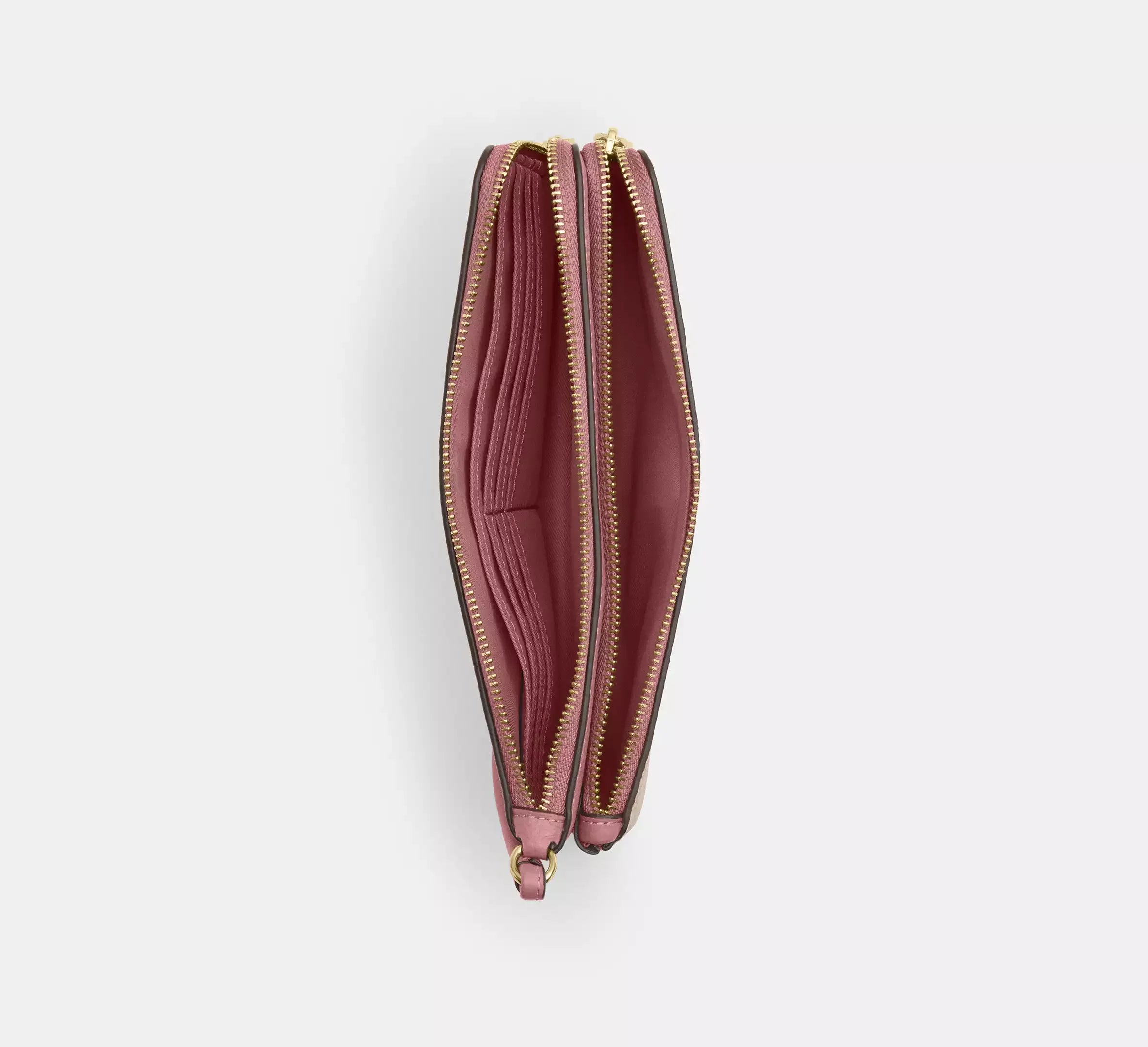 Coach Double Zip Wallet In Signature – Gold/Sand/Peony