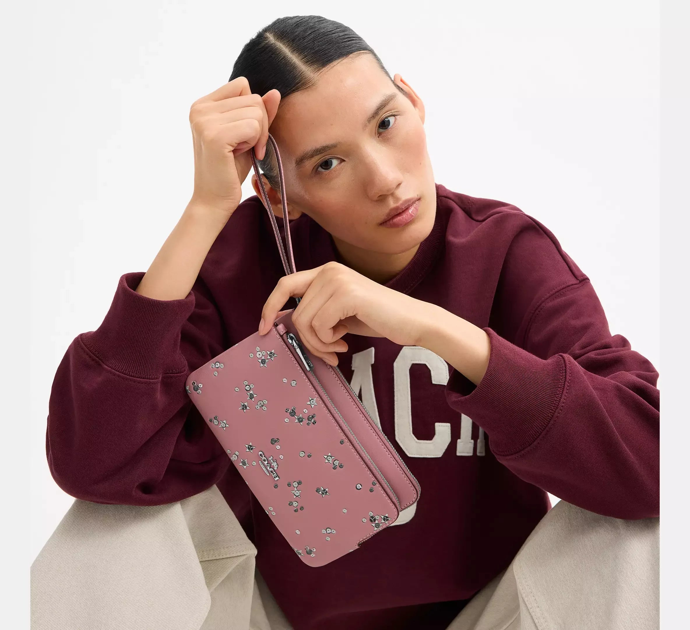 Coach Double Zip Wallet With Star Print – Silver/Dusty Pink Multi