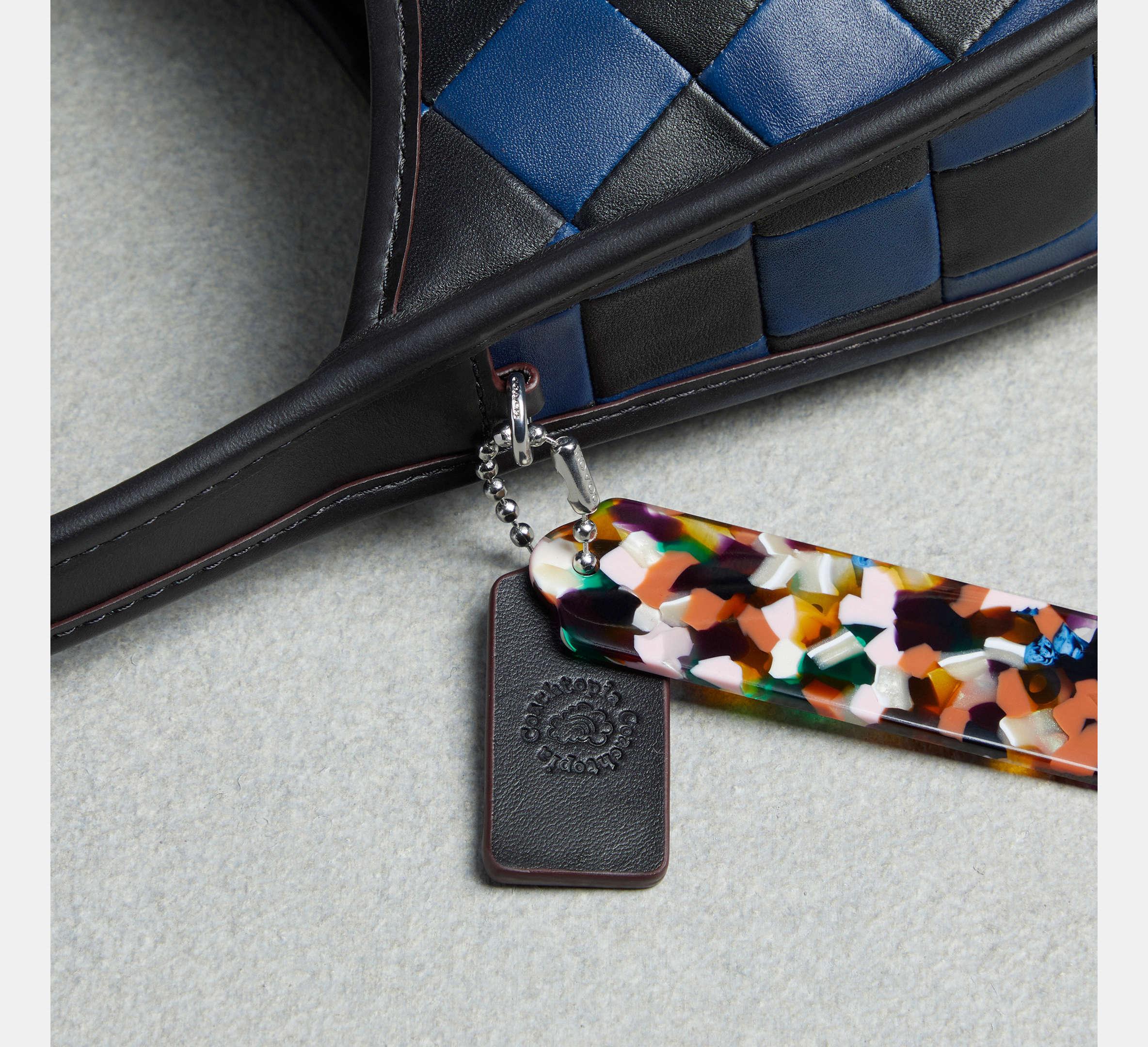 Bu çanta, el yapımı olması nedeniyle her bir ürünün renk kombinasyonu benzersizdir. Coachtopia deri astarı ve %70 geri dönüştürülmüş akrilik plastik asma etiketi ile çevre dostu bir yaklaşım sergilemektedir.