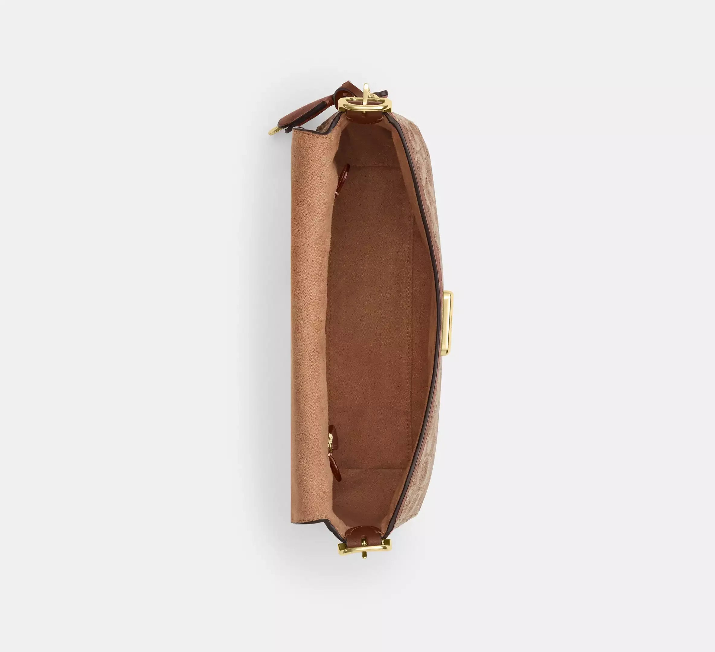 Coach Etta Small Flap Shoulder Bag In Signature Chenille – Gold/Light Khaki/Vintage Brown