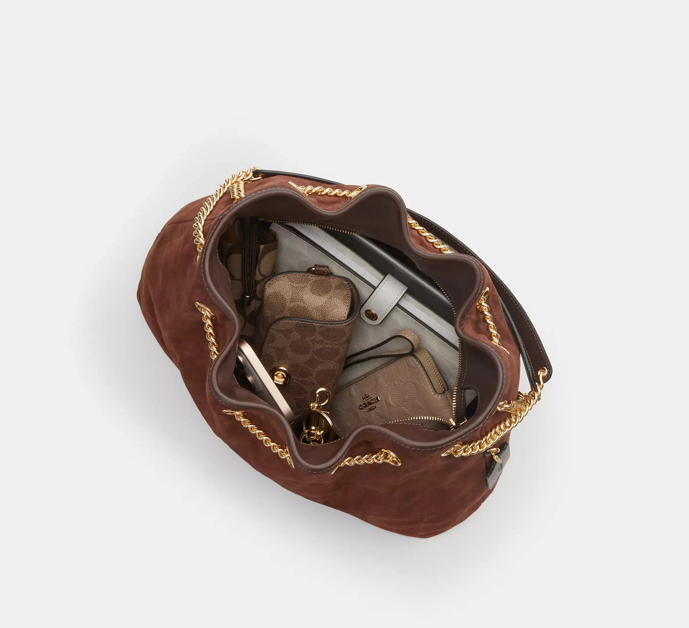 Coach Evelyn Shoulder Bag With Quilting – Gold/Vintage Brown/Maple