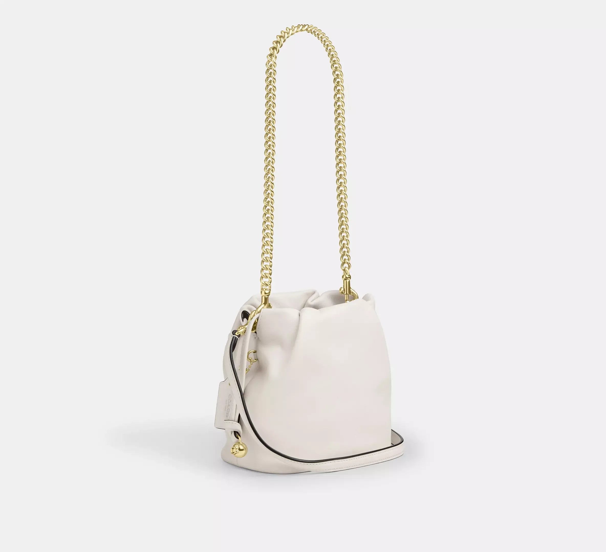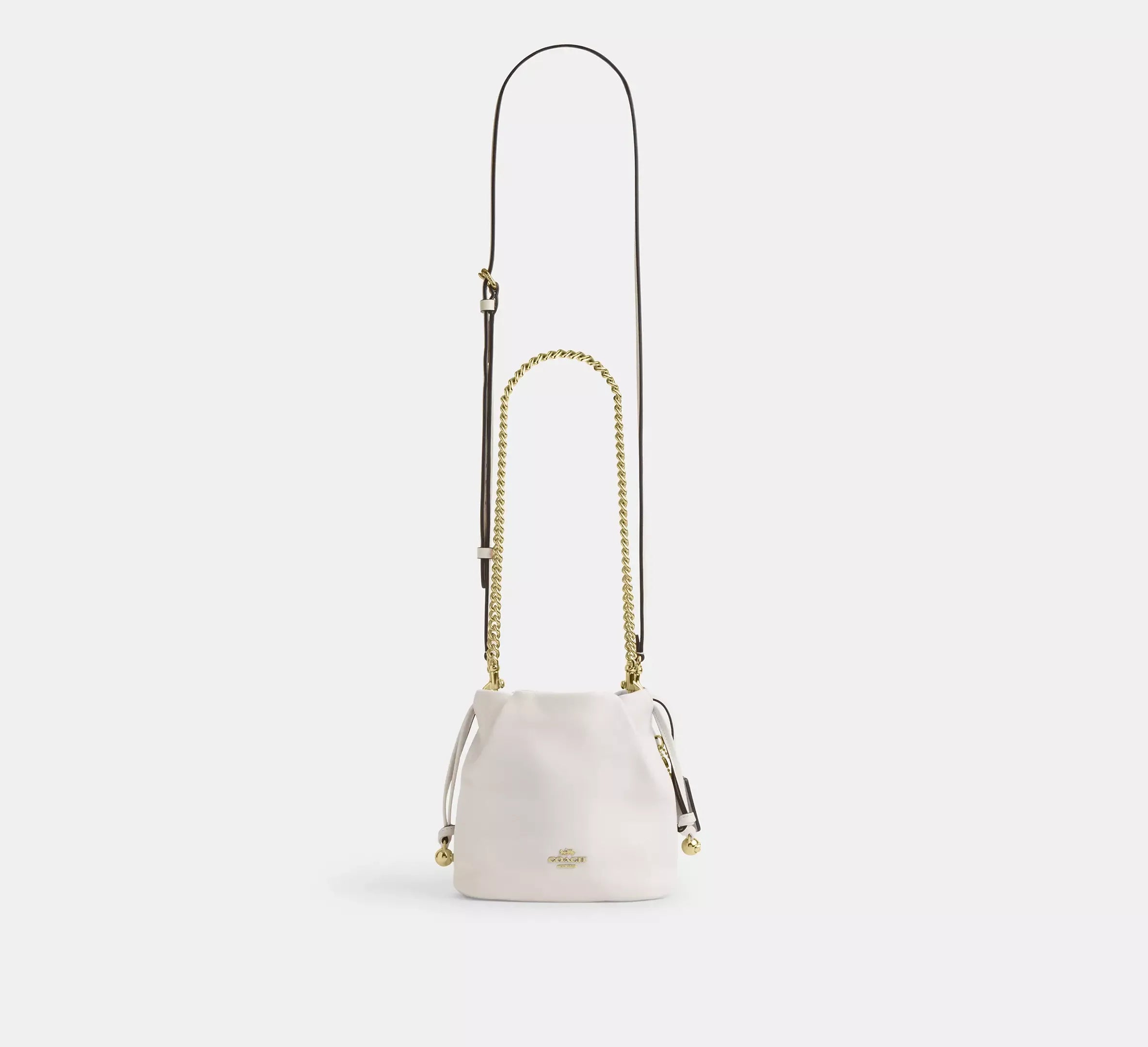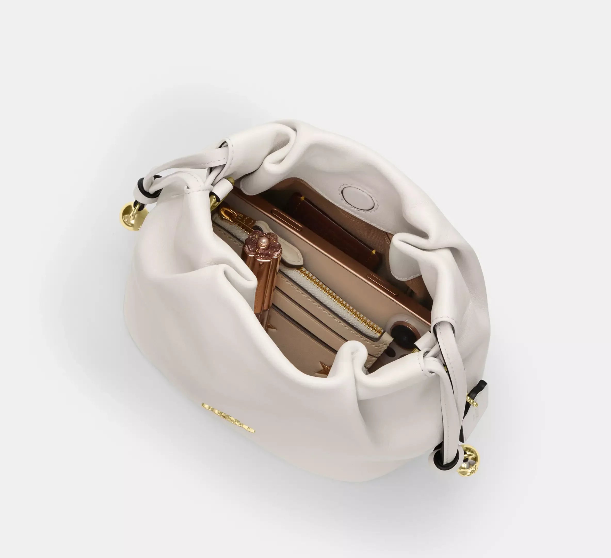 Coach Faye Mini Drawstring Bag With Ruching – Gold/Chalk