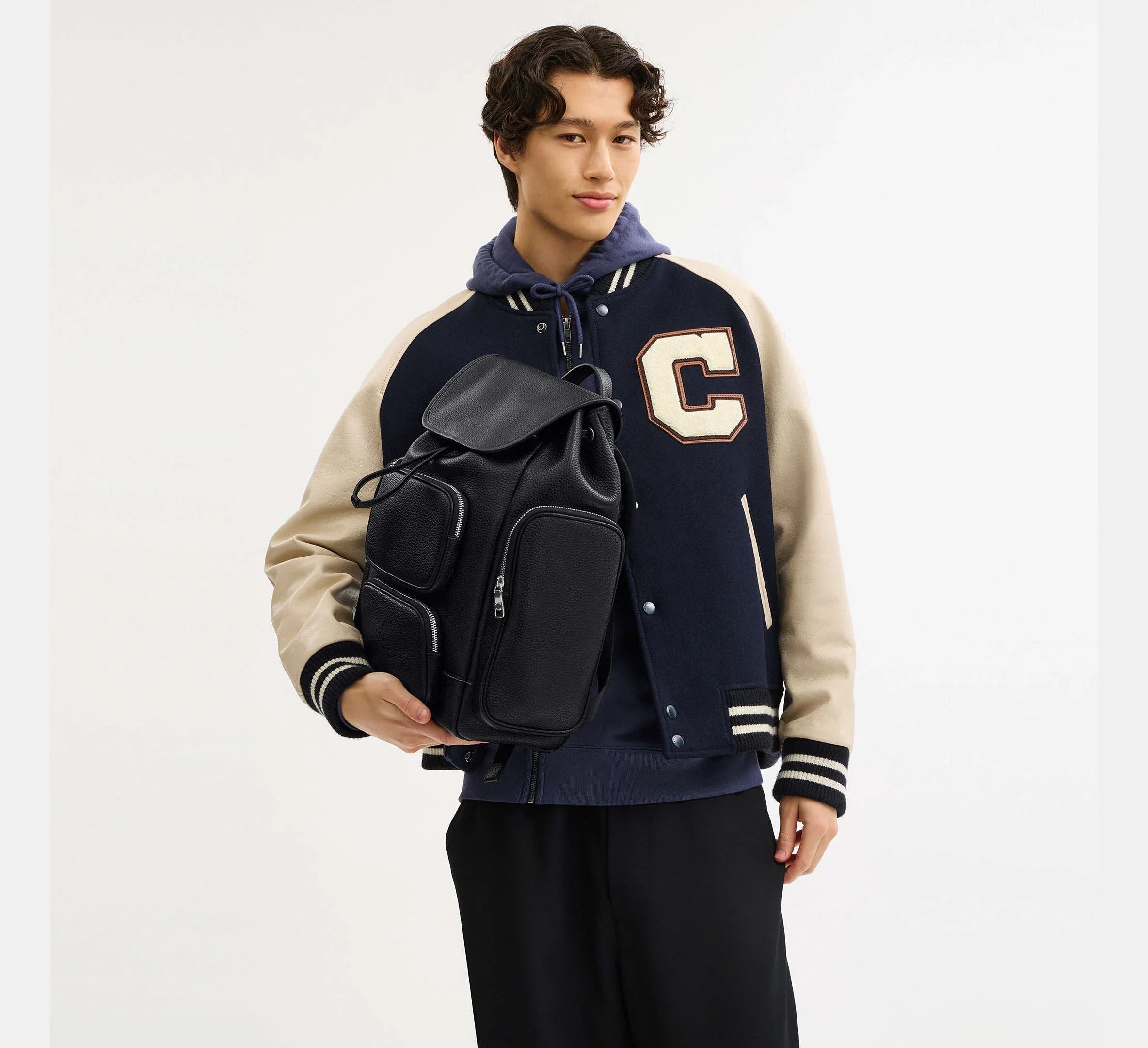 Yumuşak taneli deri ve kumaş astar, bu çantanın dayanıklılığını artırırken, estetik bir denge oluşturur. Dış taraftaki fermuarlı cepler ve iç bölmeler, hem şıklığı hem de işlevselliği bir araya getirir.