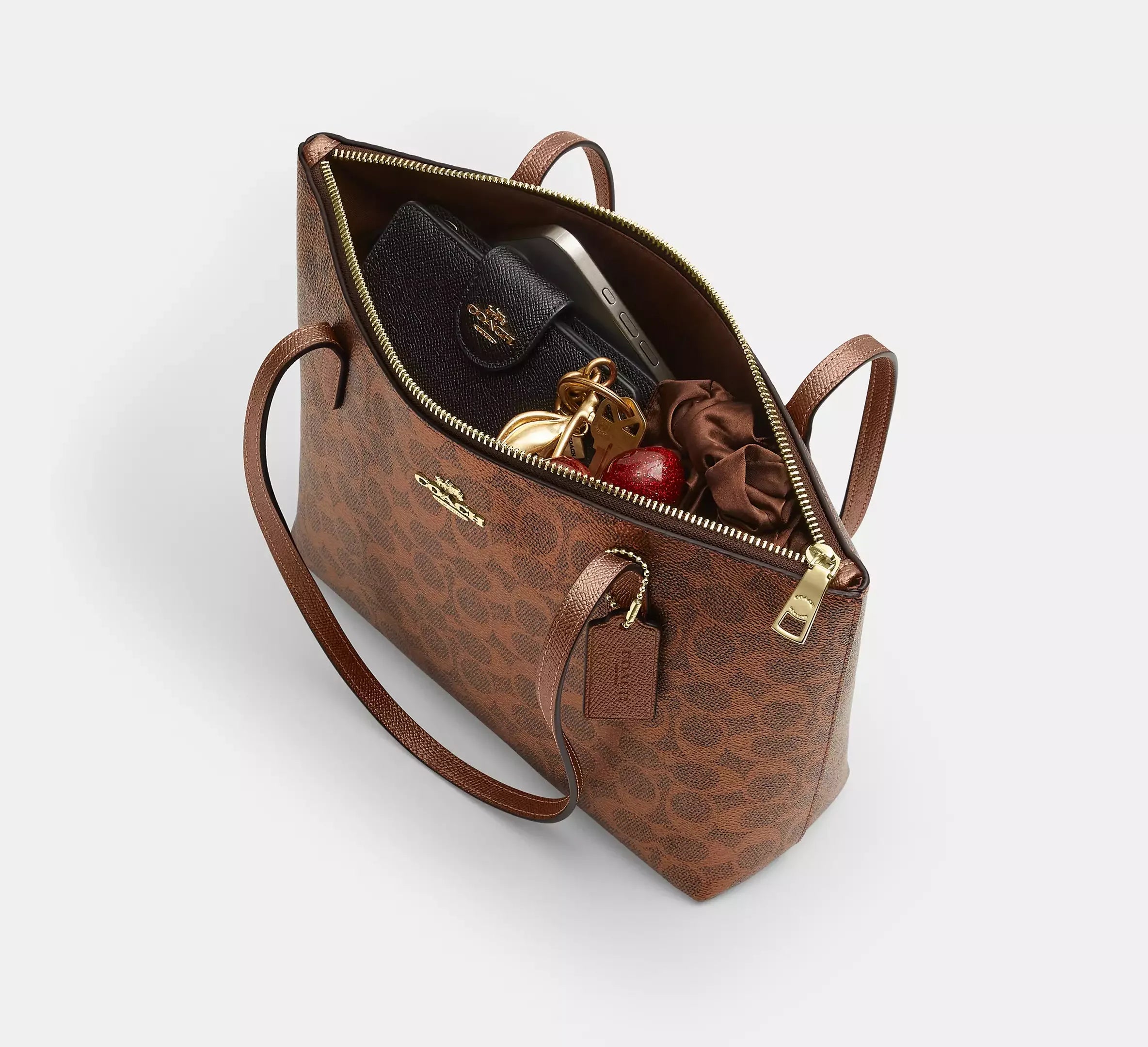 Coach Fiona Zip Tote Bag In Signature – Gold/Brown/Copper