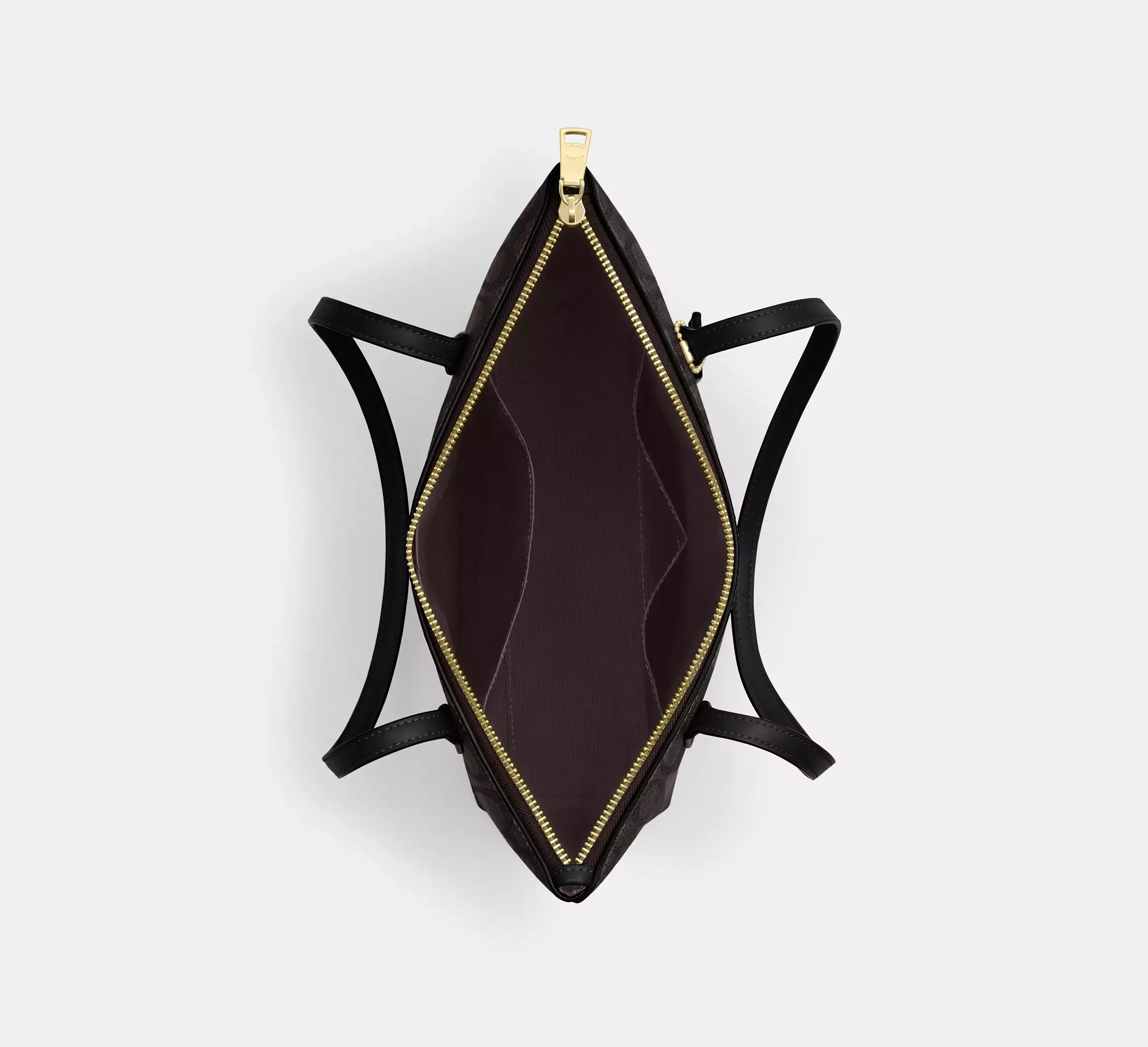 Coach Fiona Zip Tote Bag In Signature – Gold/Walnut/Black