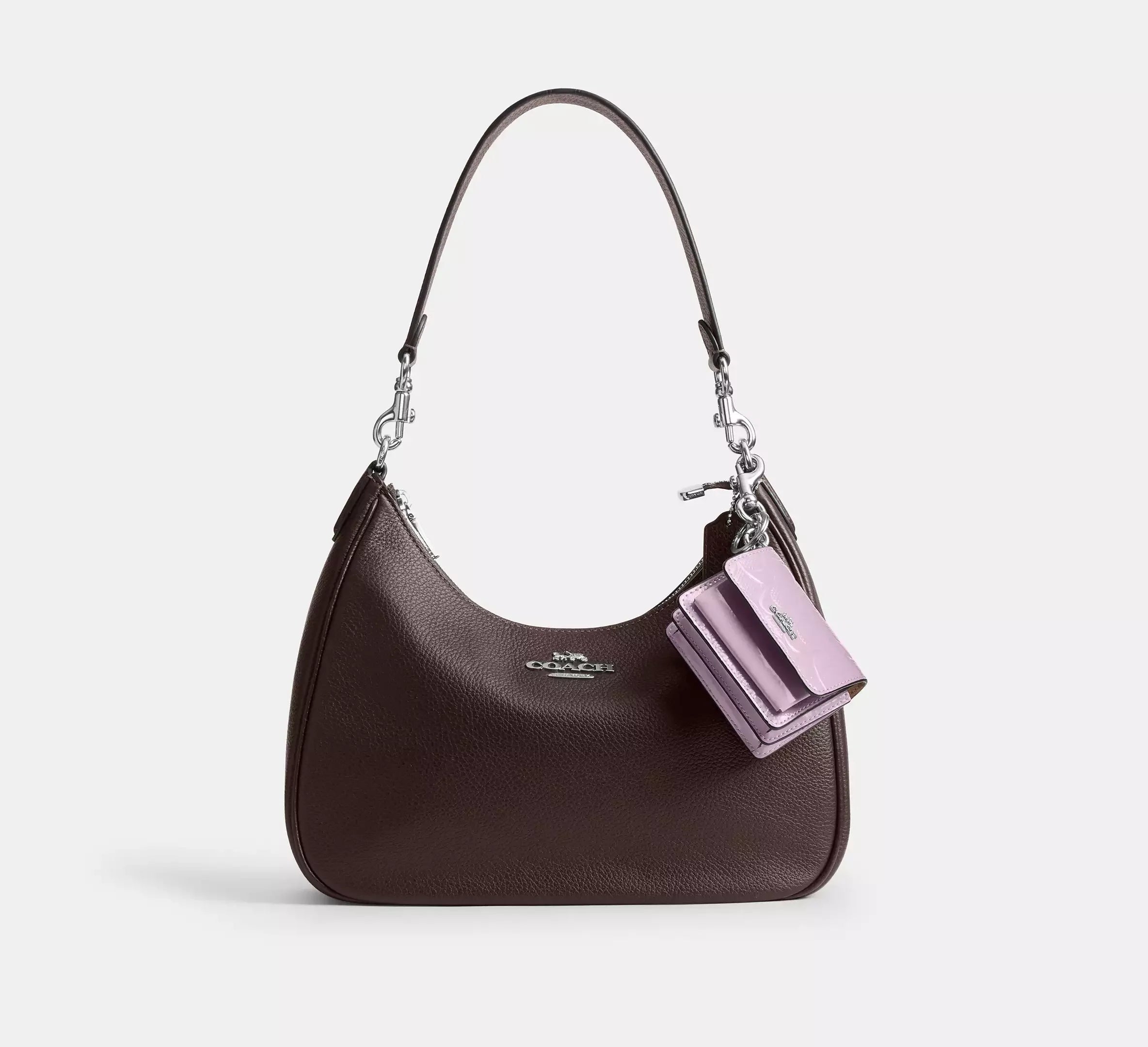Coach Klare Bag Charm In Signature Leather With Heart Charm – Silver