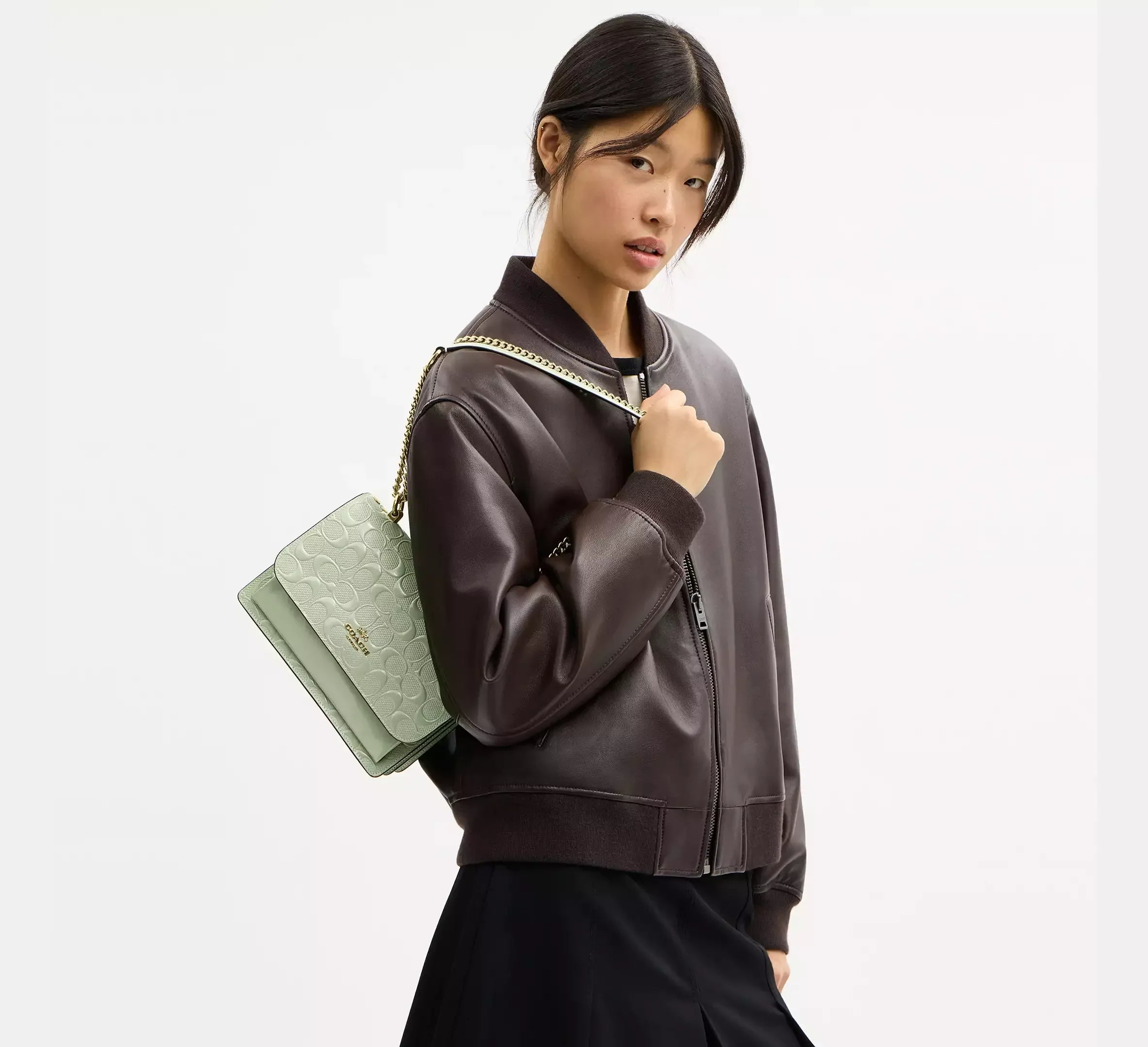 Coach Klare Crossbody Bag In Signature Leather – Gold/Pale Green