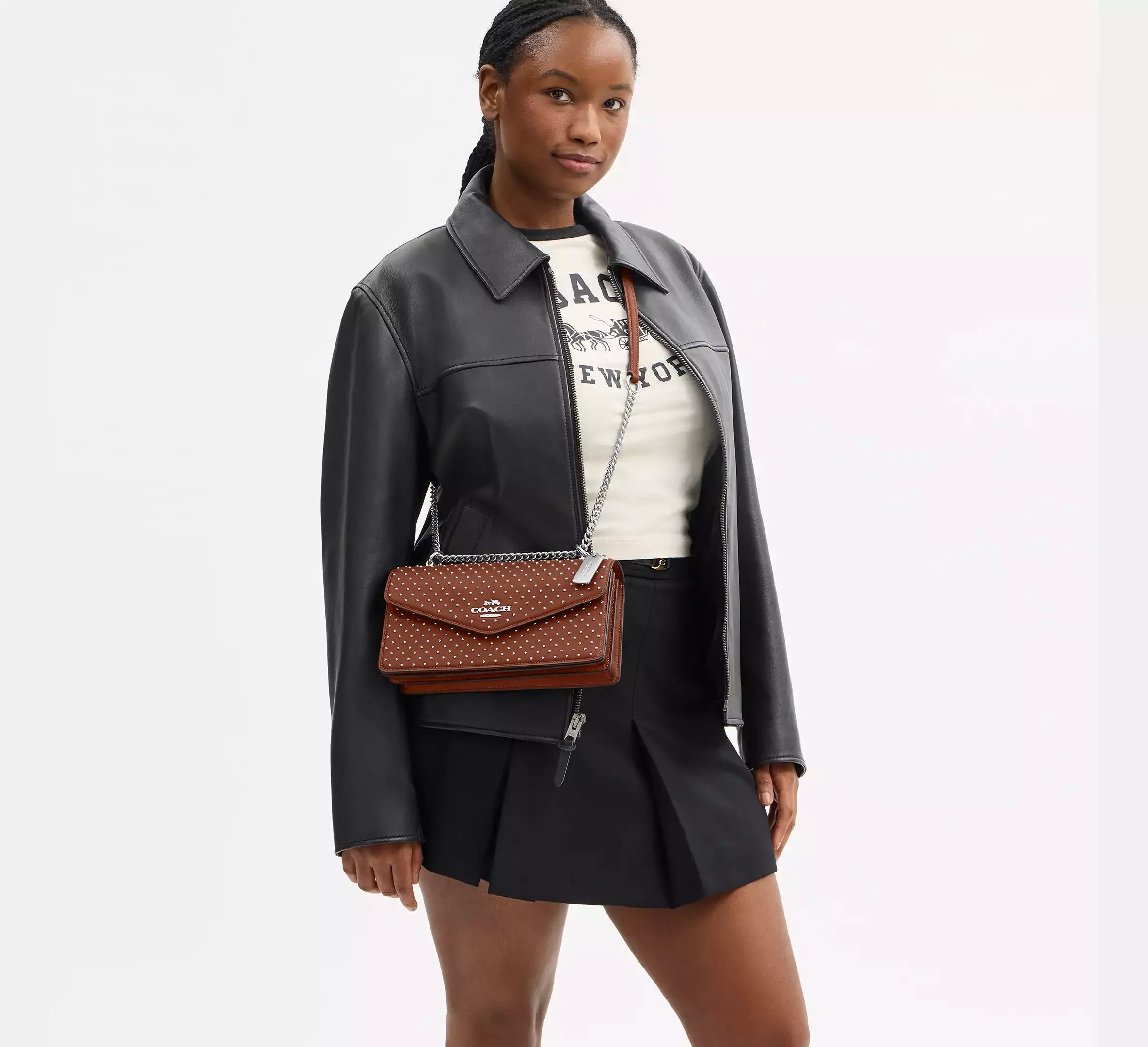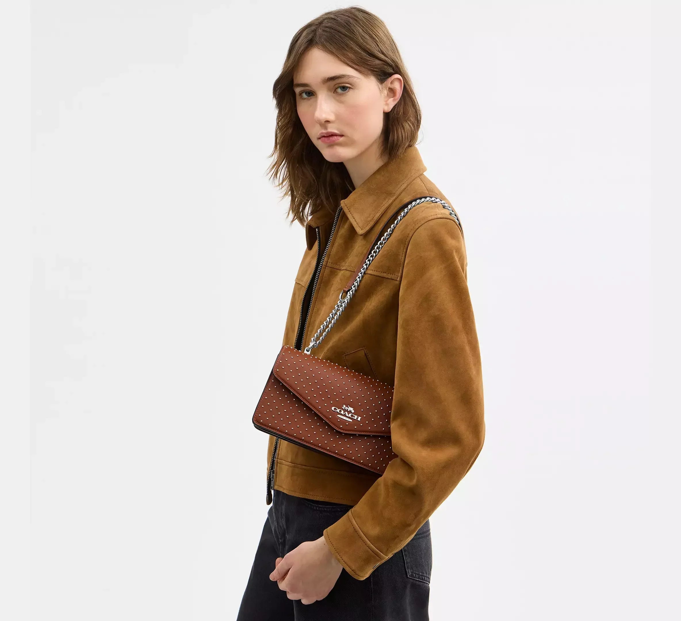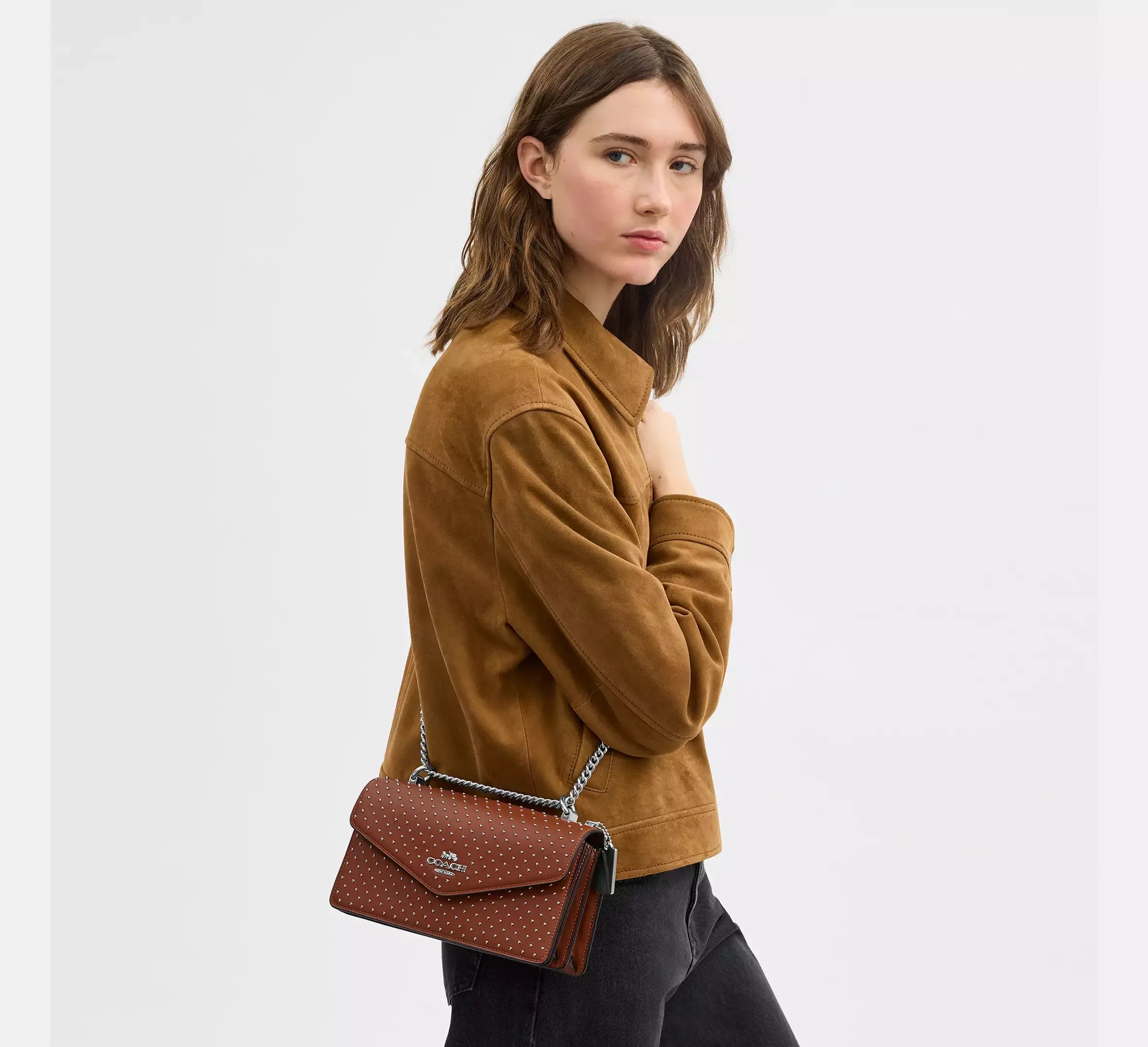 Coach Klare Envelope Crossbody Bag With Rivets – Silver/Pecan