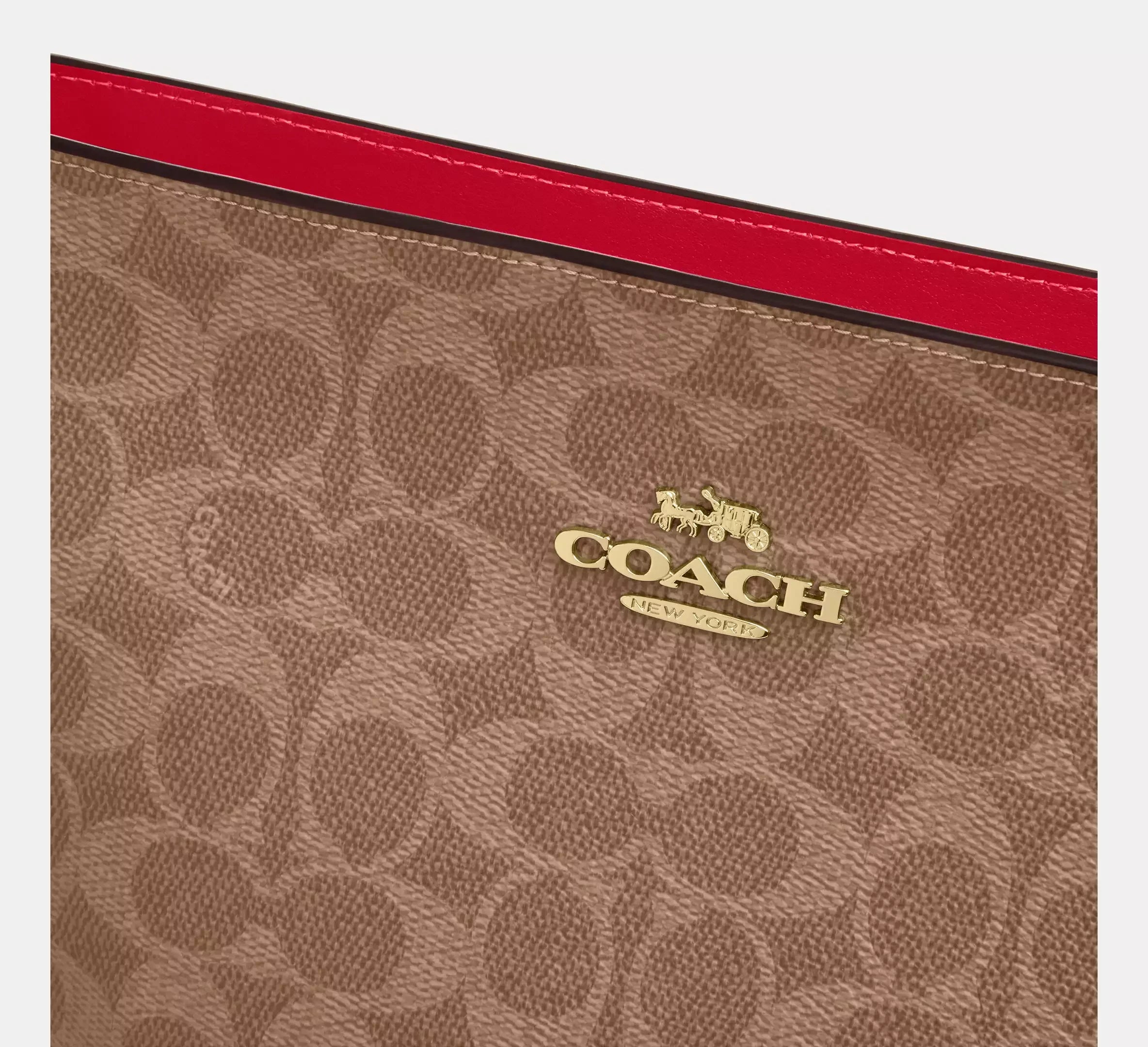 Coach Logan Duffle Bag In Signature – Gold/Tan/Carnation