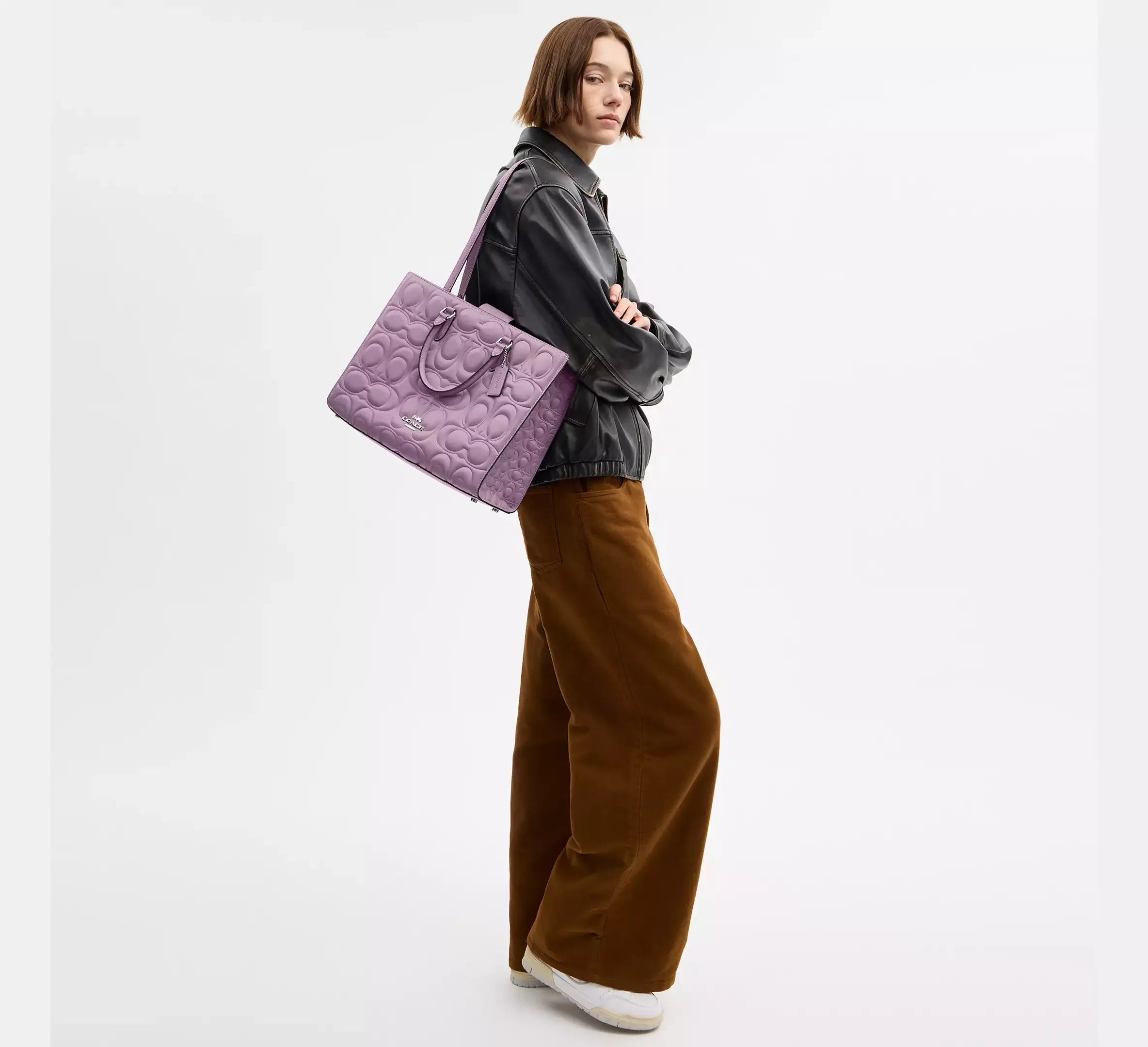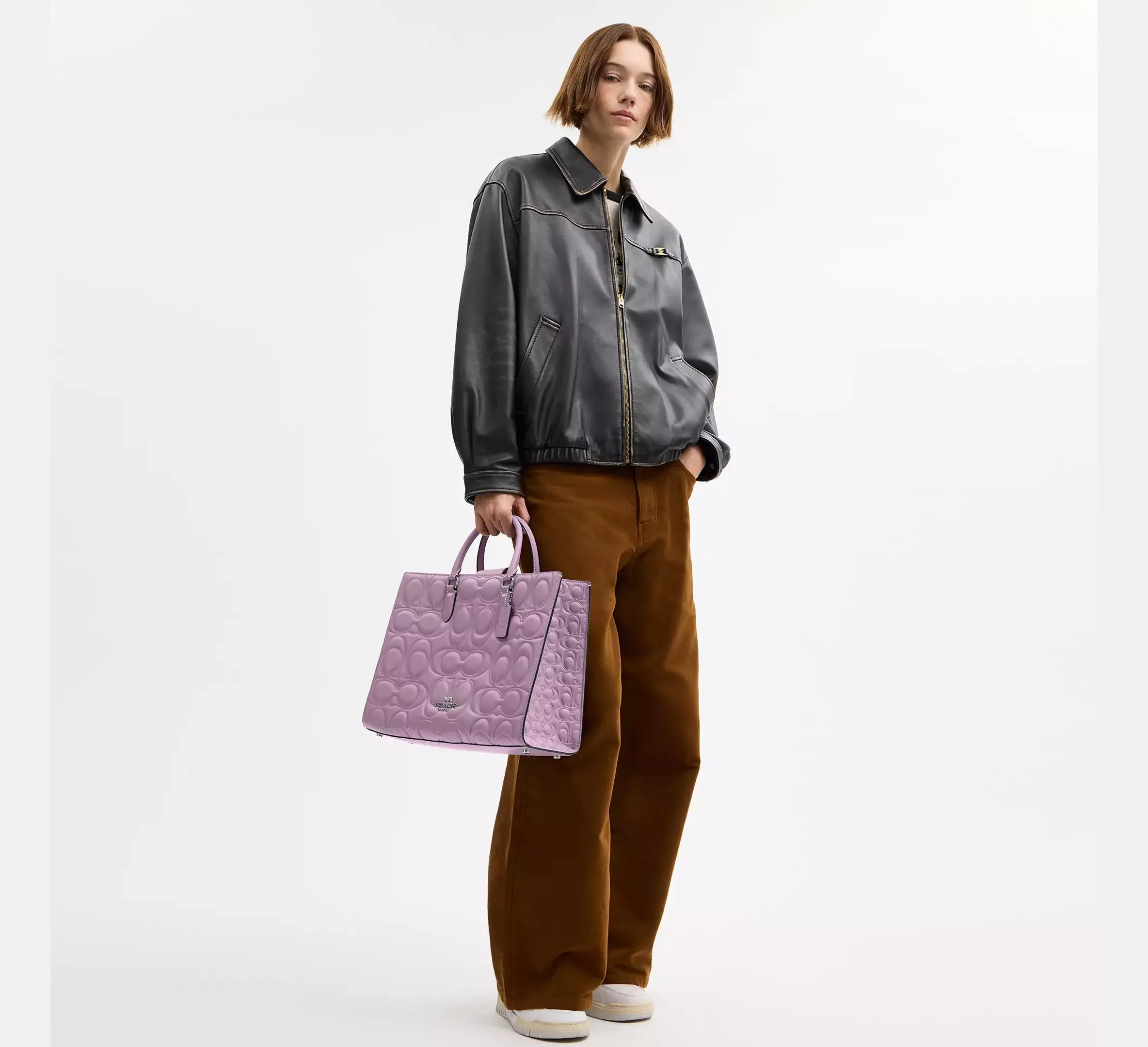 Coach Maggie Tote Bag In Signature Leather – Silver