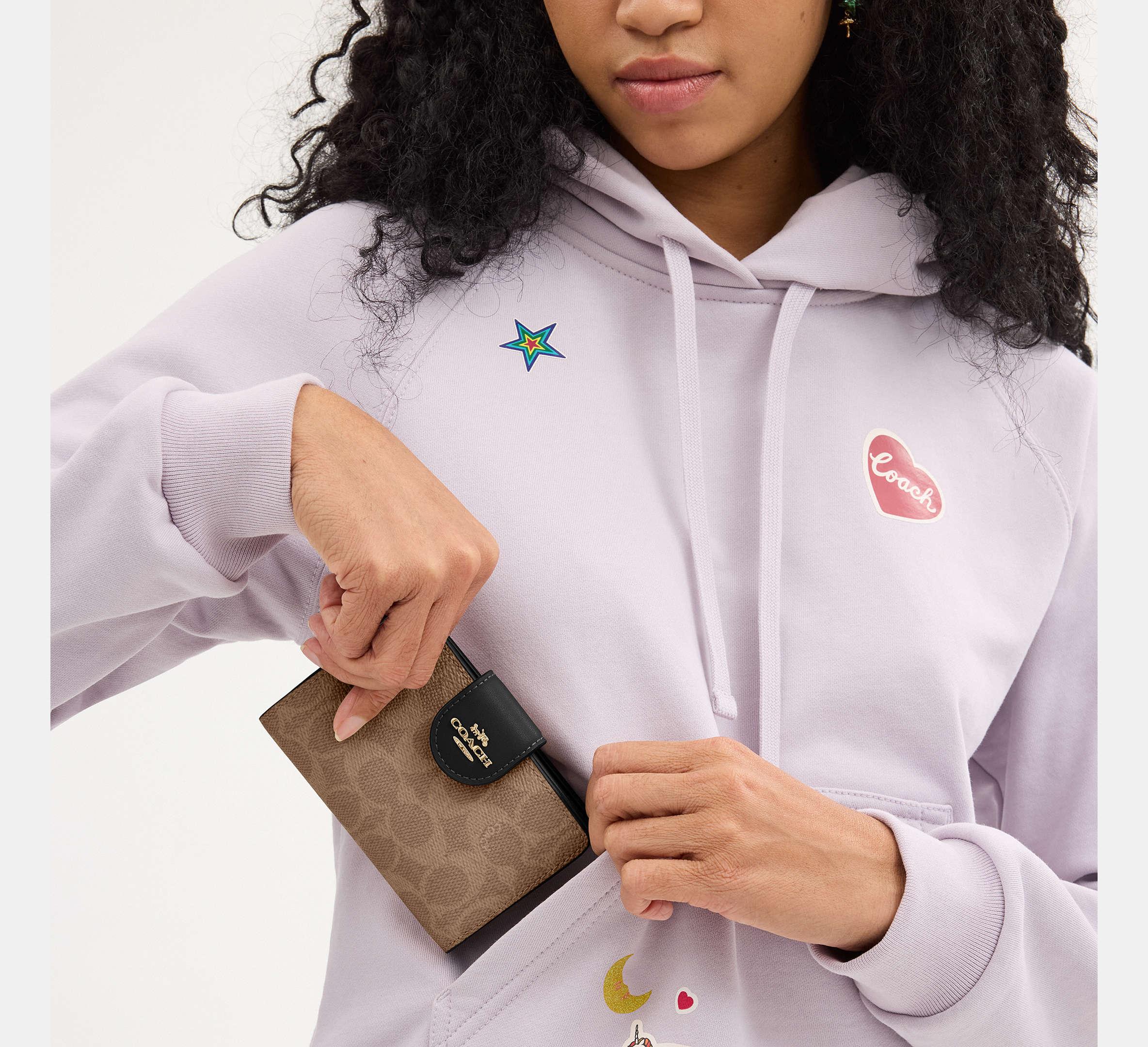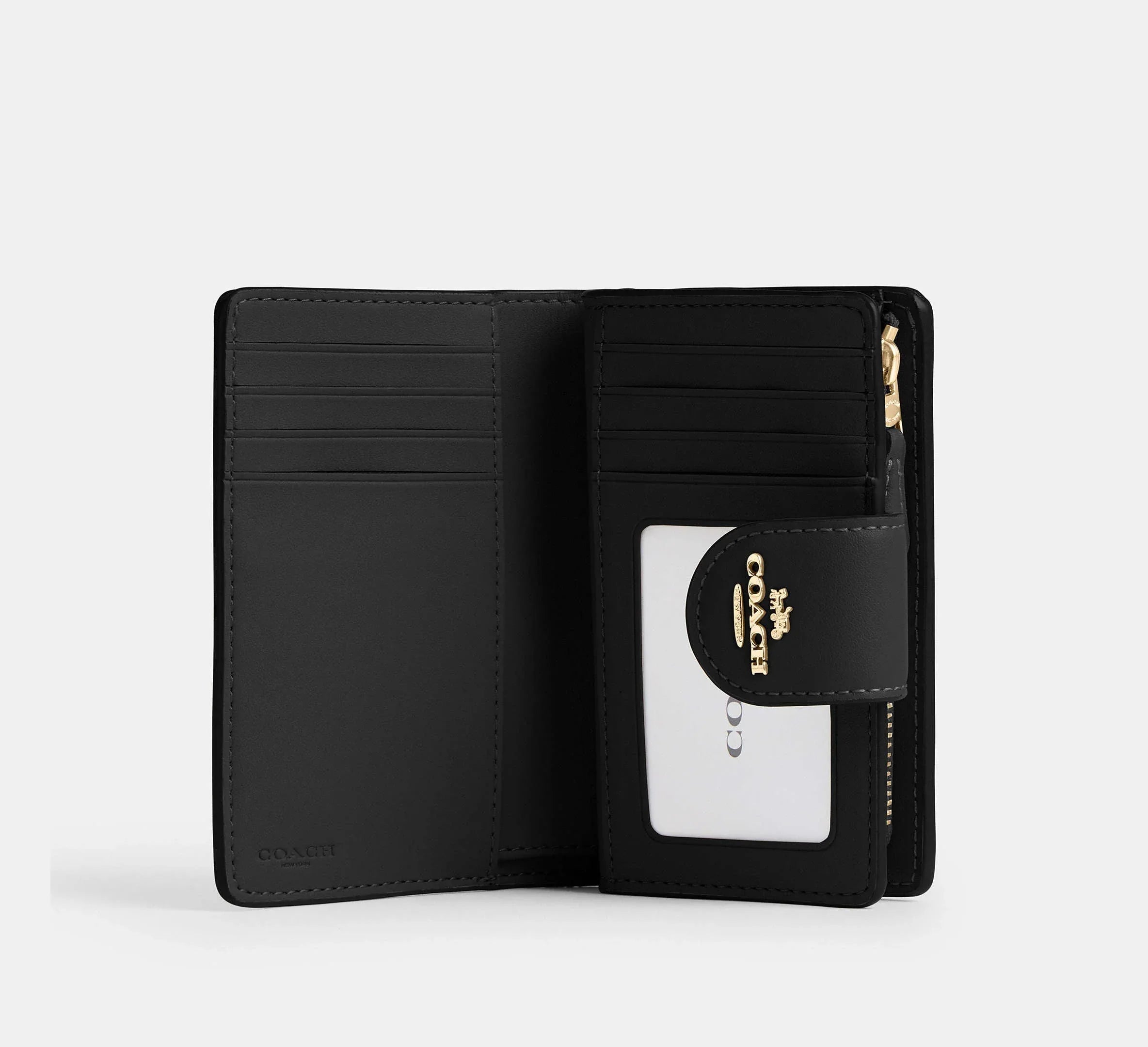 Coach Medium Corner Zip Wallet In Signature – Gold/Tan/Black