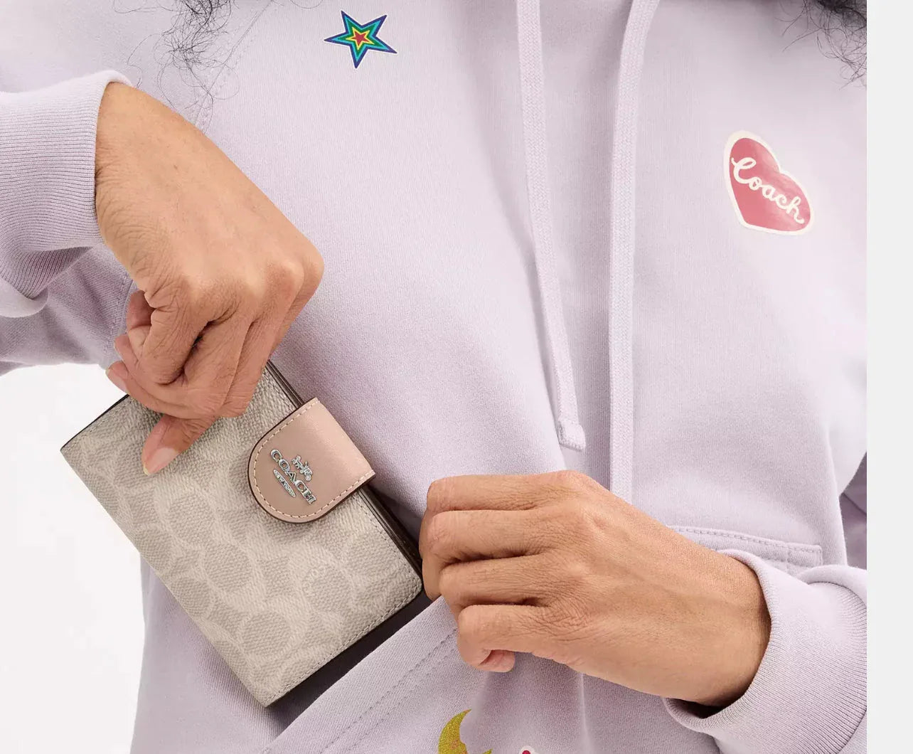 Coach Medium Corner Zip Wallet In Signature – Silver