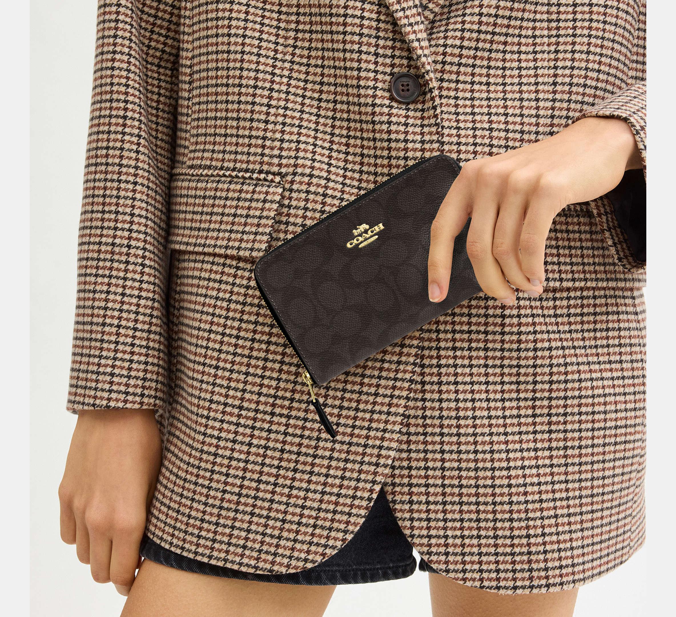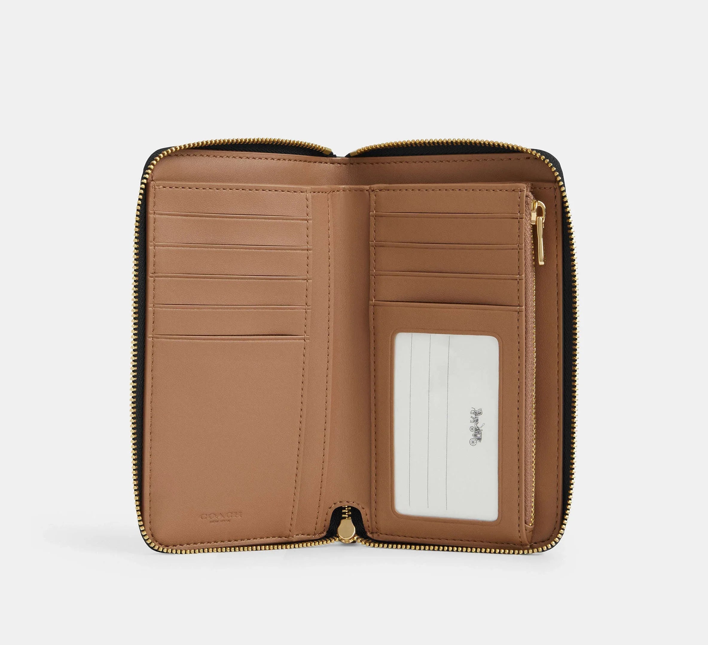 Coach Medium Id Zip Wallet In Signature – Gold/Walnut/Black