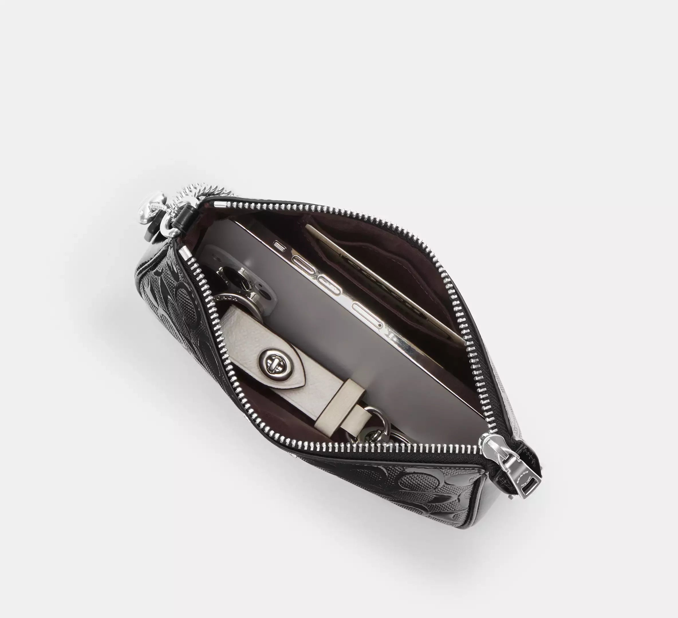 Coach Nolita 19 In Signature Leather With Heart Charm – Silver/Black