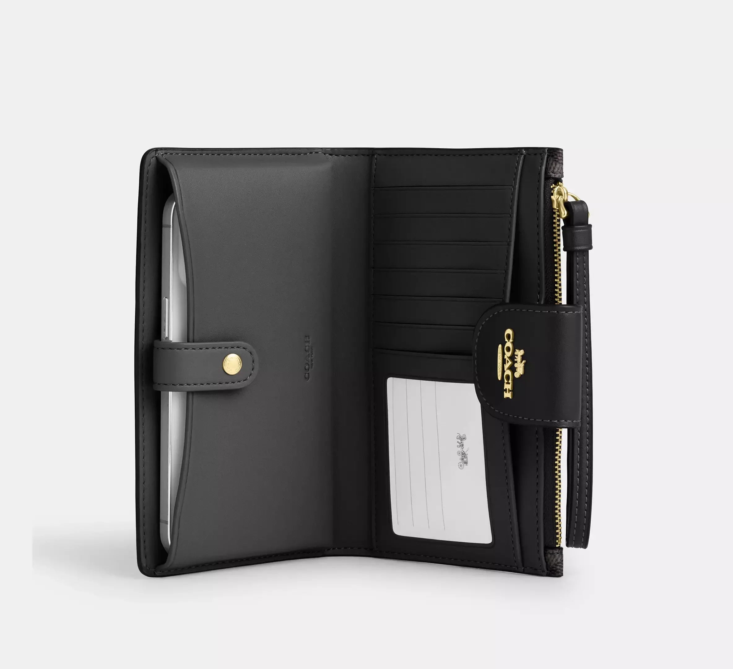 Coach Phone Wallet In Signature – Gold/Walnut/Black