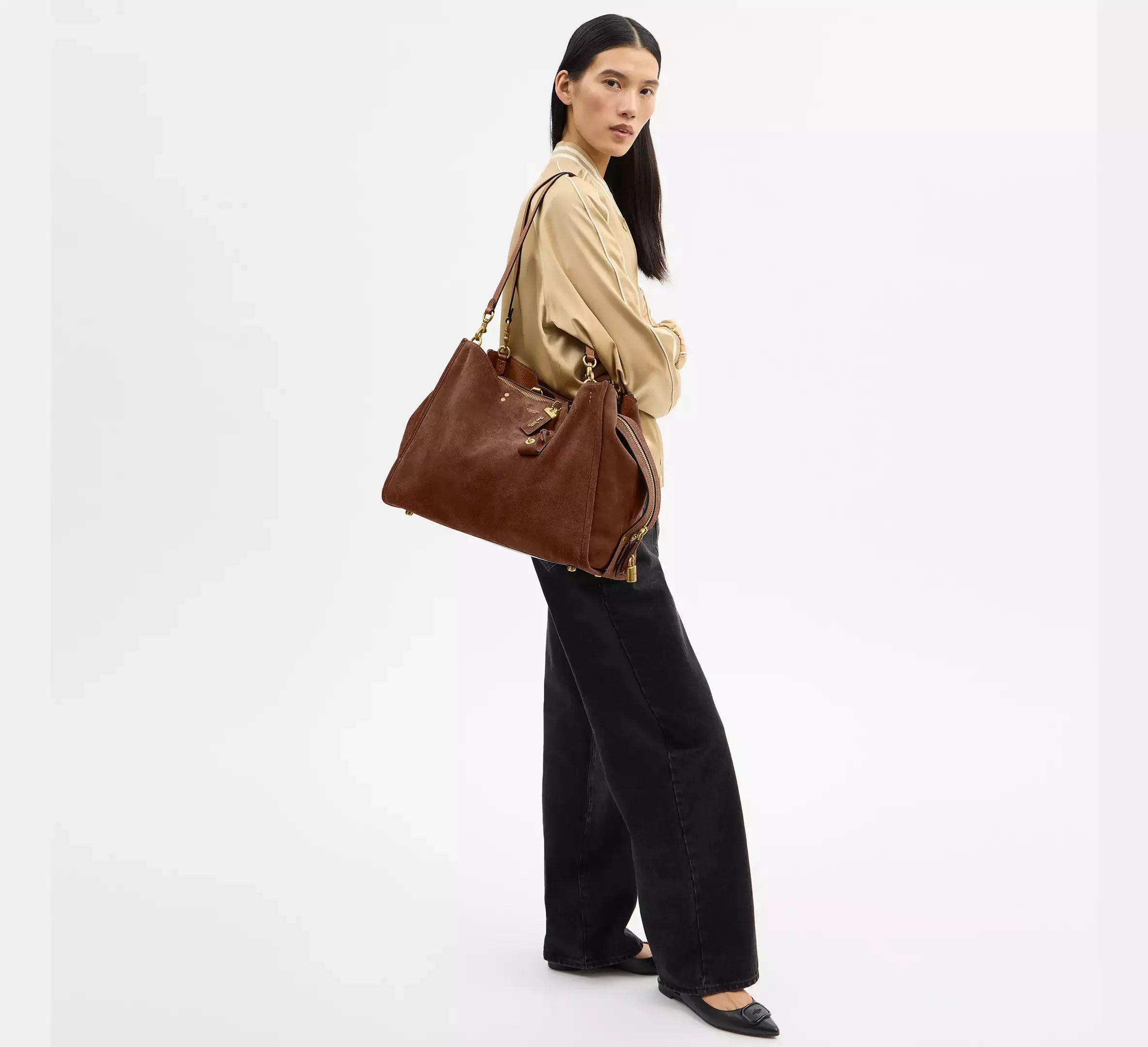 Bu çanta, özenle seçilmiş süet ve yumuşak dokulu deri ile tasarlanmıştır, böylece hem estetik hem de dayanıklılık açısından mükemmel bir denge sağlar. Deri ve kumaş astar, iç mekanın şıklığını tamamlayarak kullanıcıya kaliteli bir deneyim sunar.