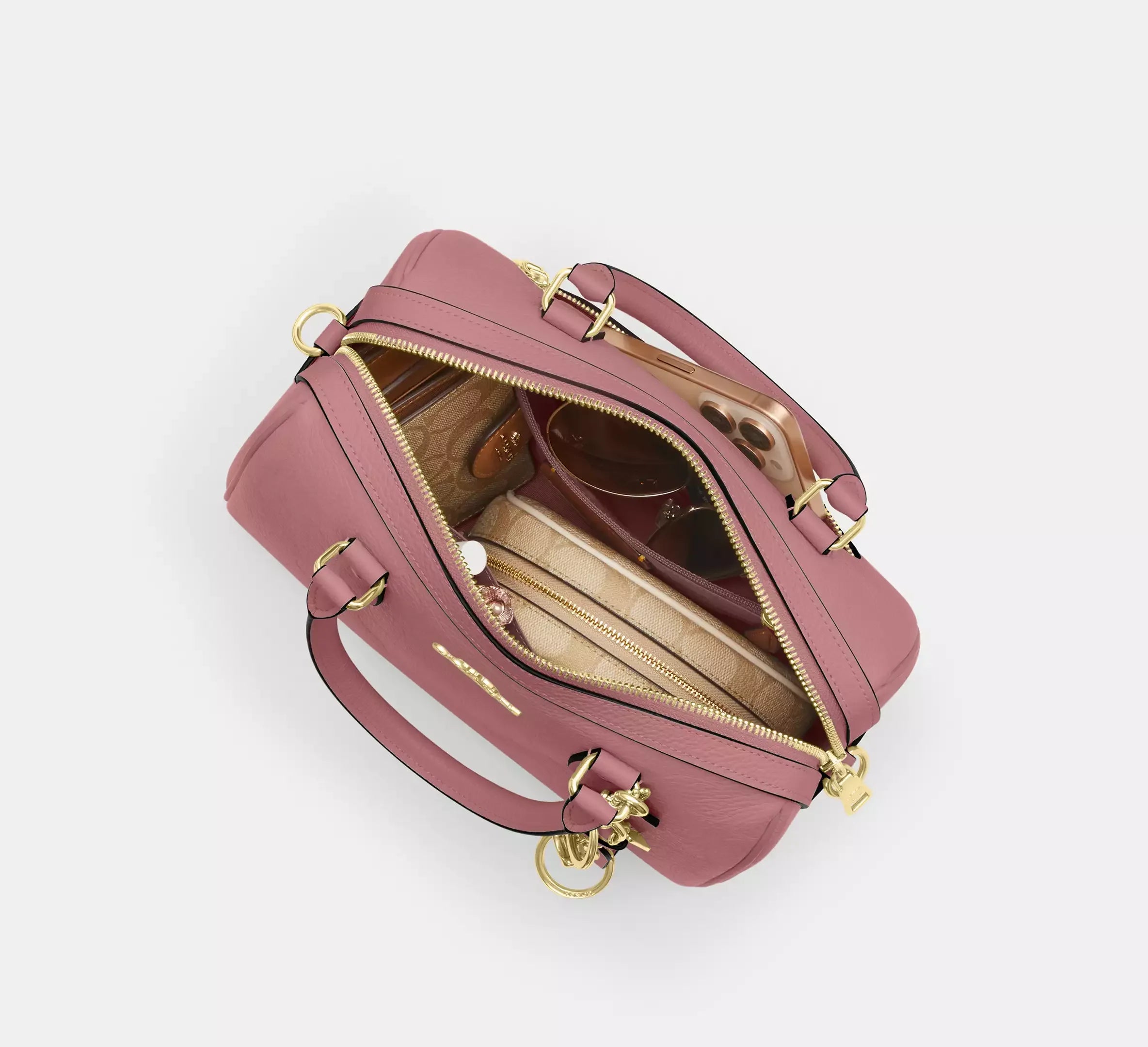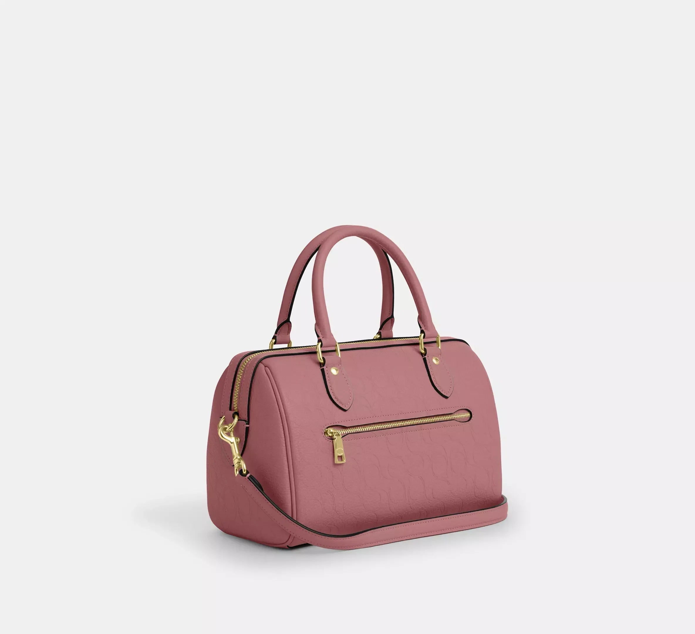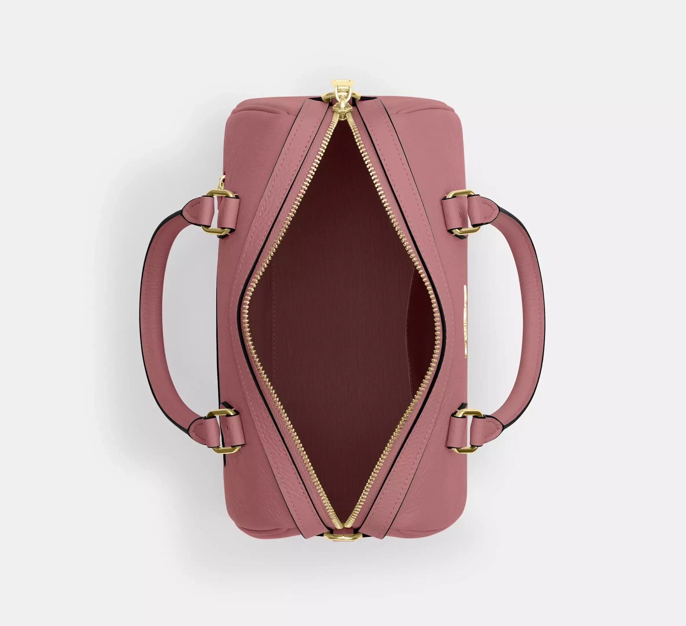 Coach Rowan Satchel Bag In Signature Leather – Gold/Peony