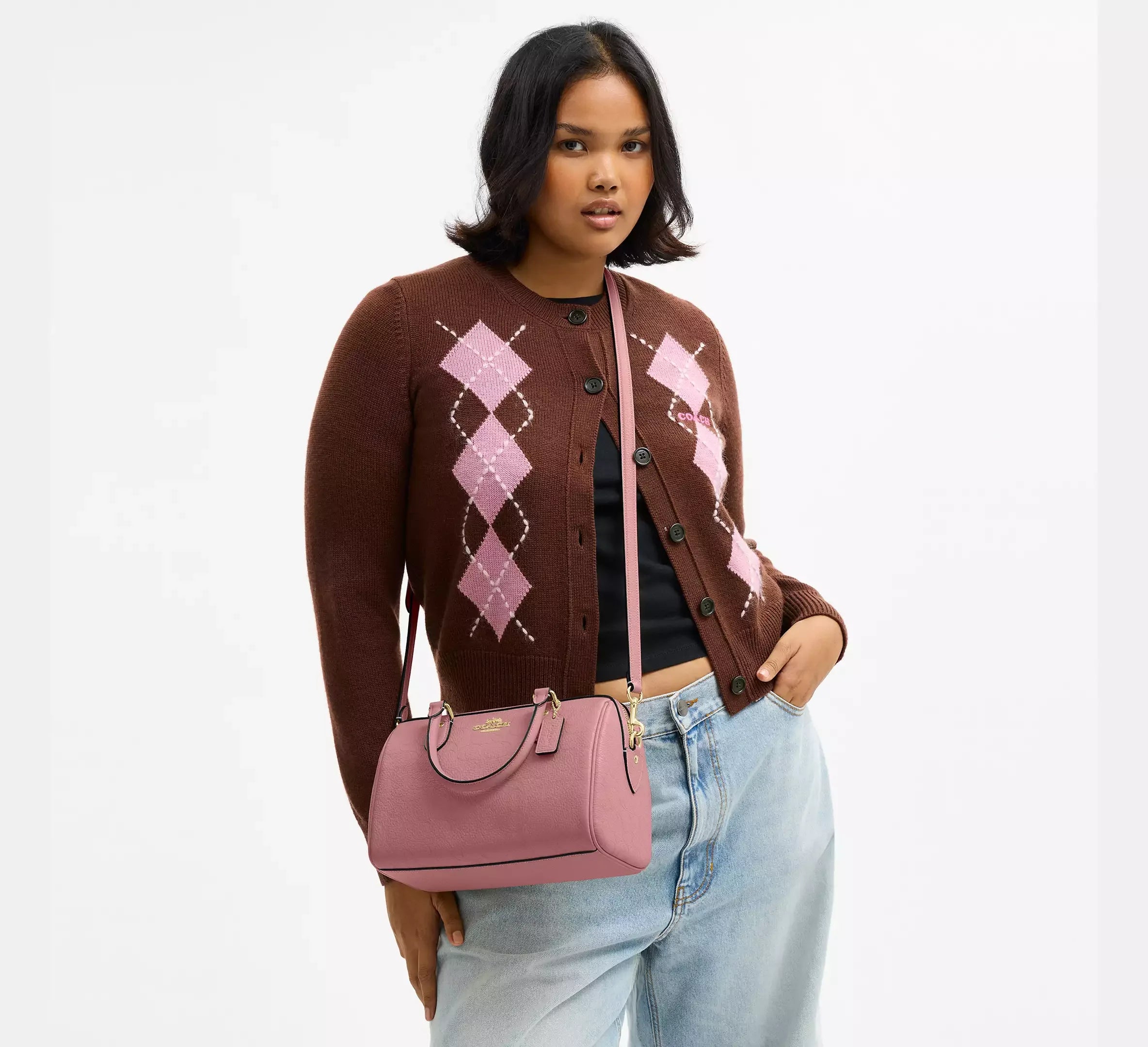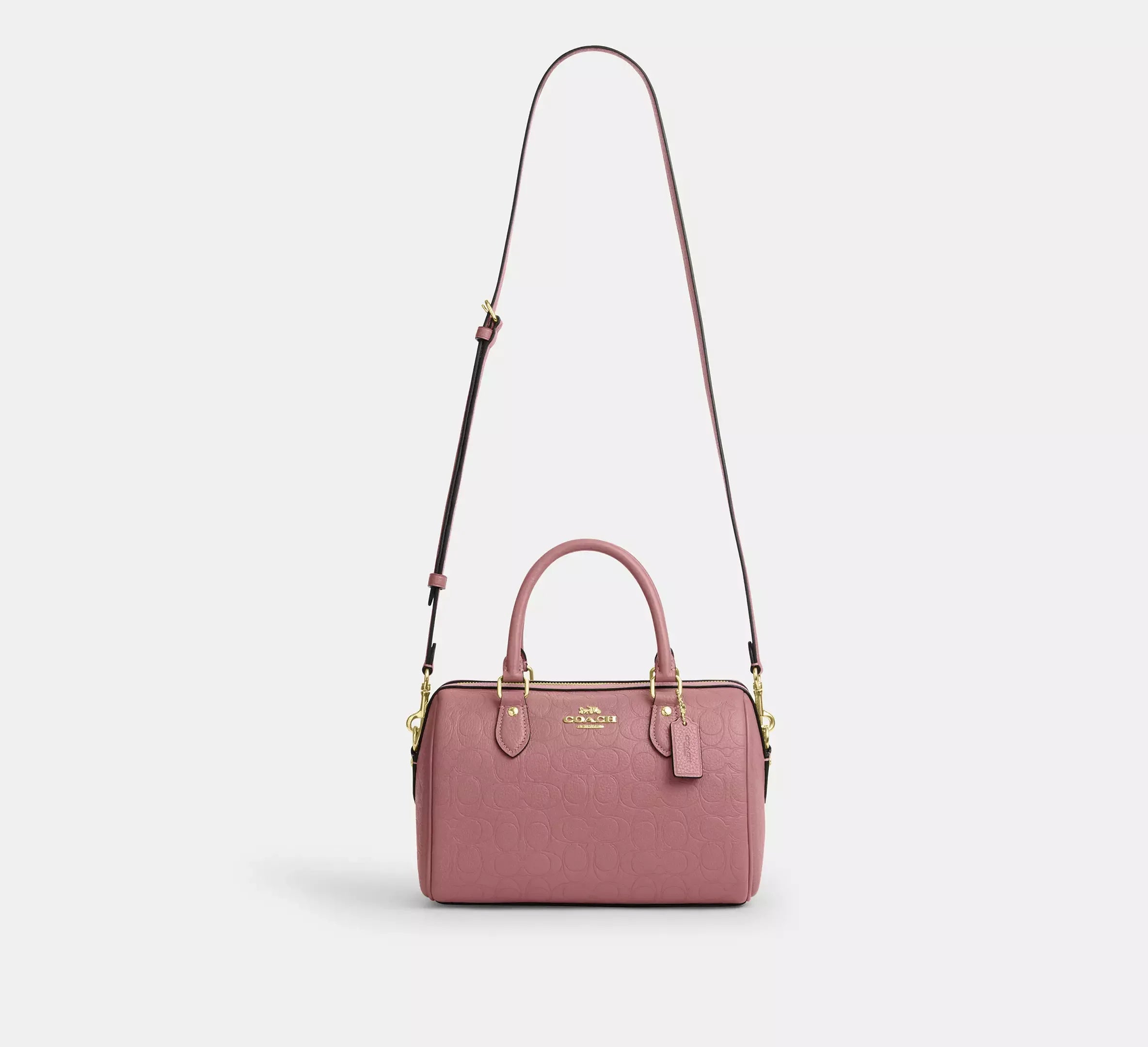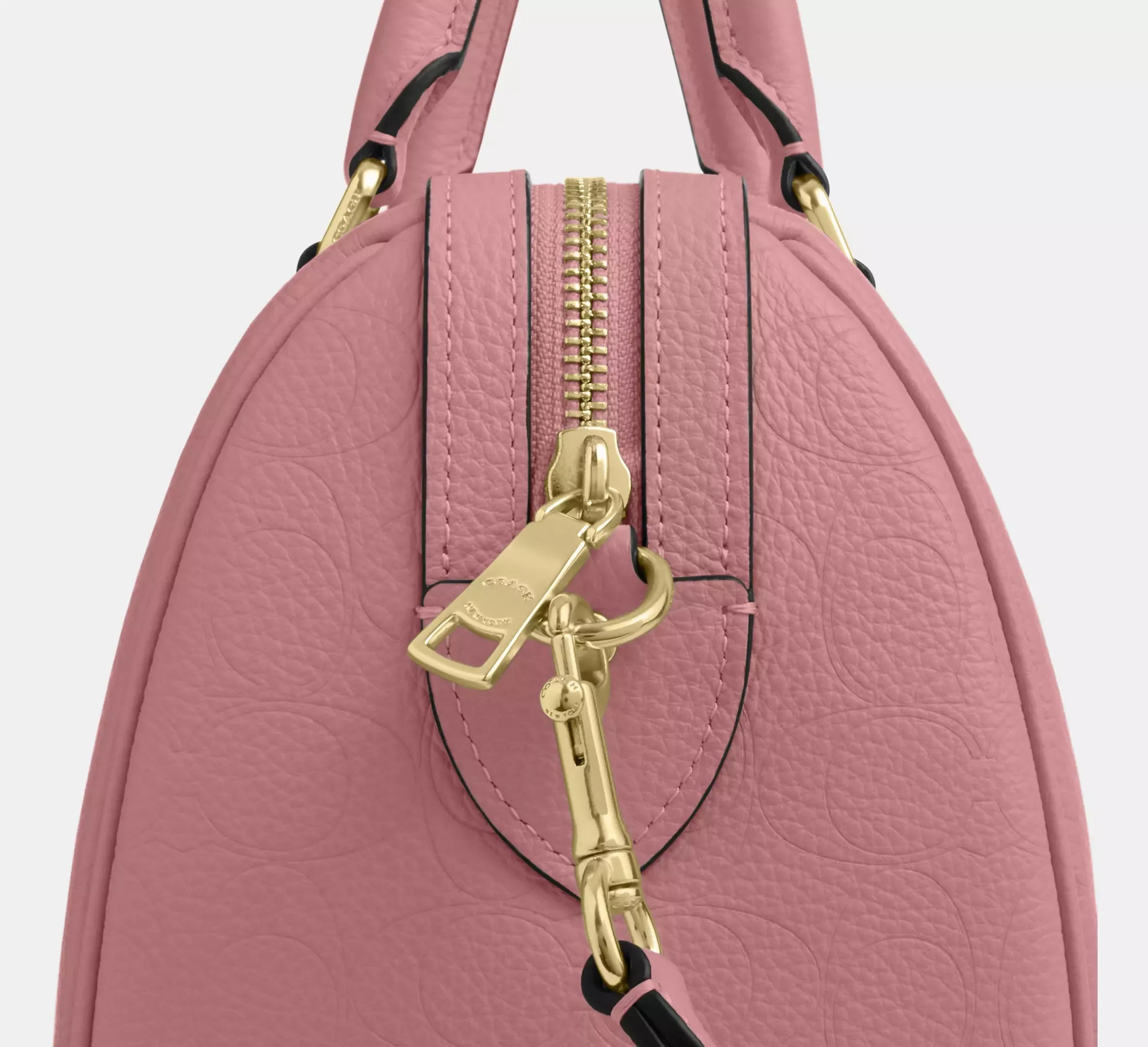 Coach Rowan Satchel Bag In Signature Leather – Gold/Peony