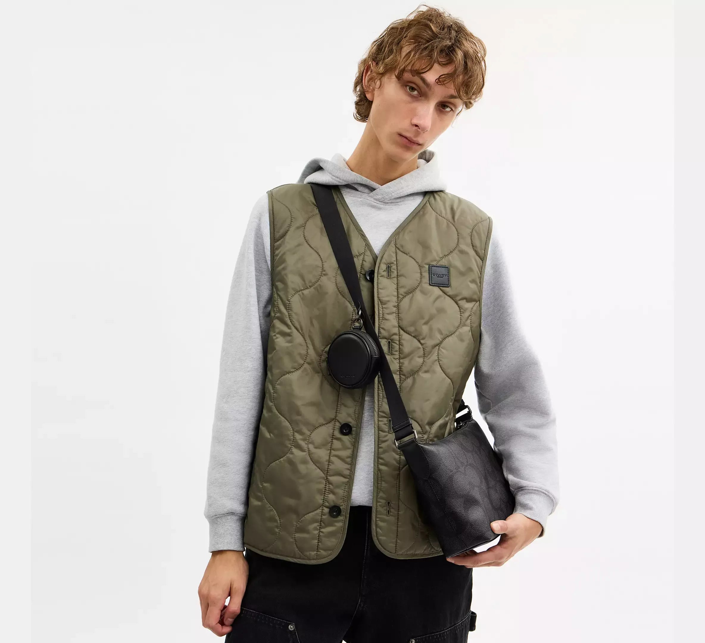 Coach Small Finn Crossbody Bag With Pouch In Maxi Signature – Gunmetal/Charcoal/Black