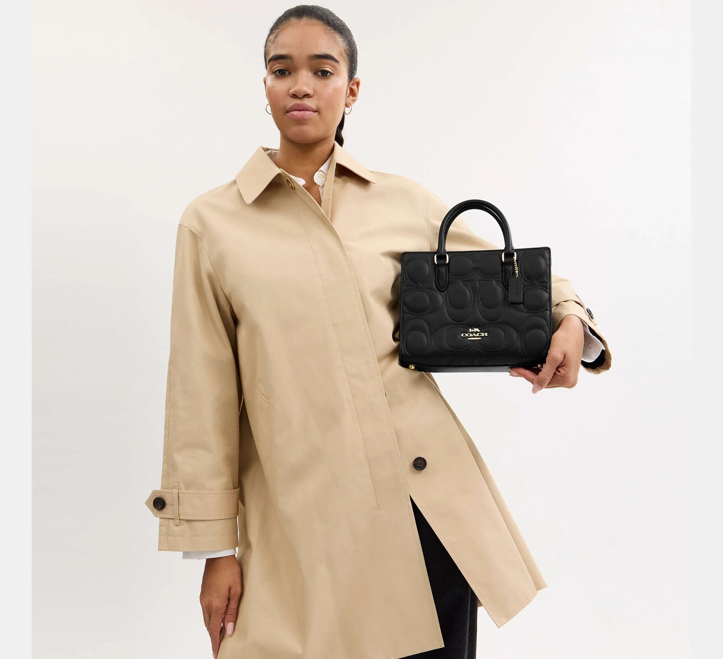 Coach Small Tote Bag In Signature Leather – Gold/Black