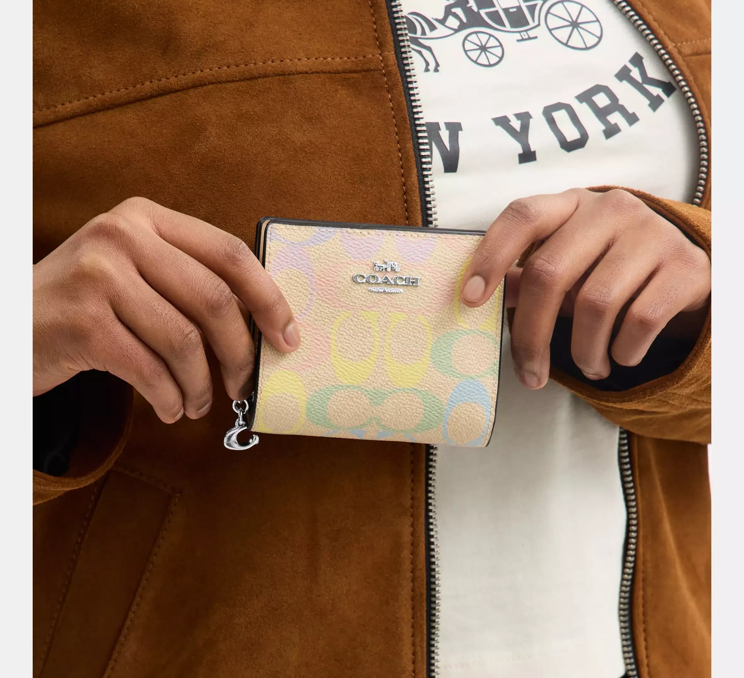 Coach Snap Wallet In Rainbow Signature – Silver