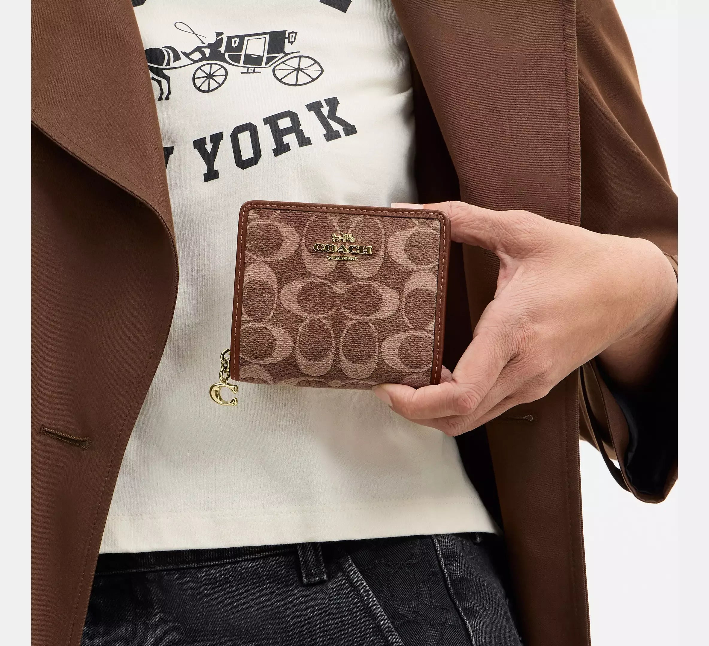Coach Snap Wallet In Signature Chenille – Gold/Light Khaki/Vintage Brown