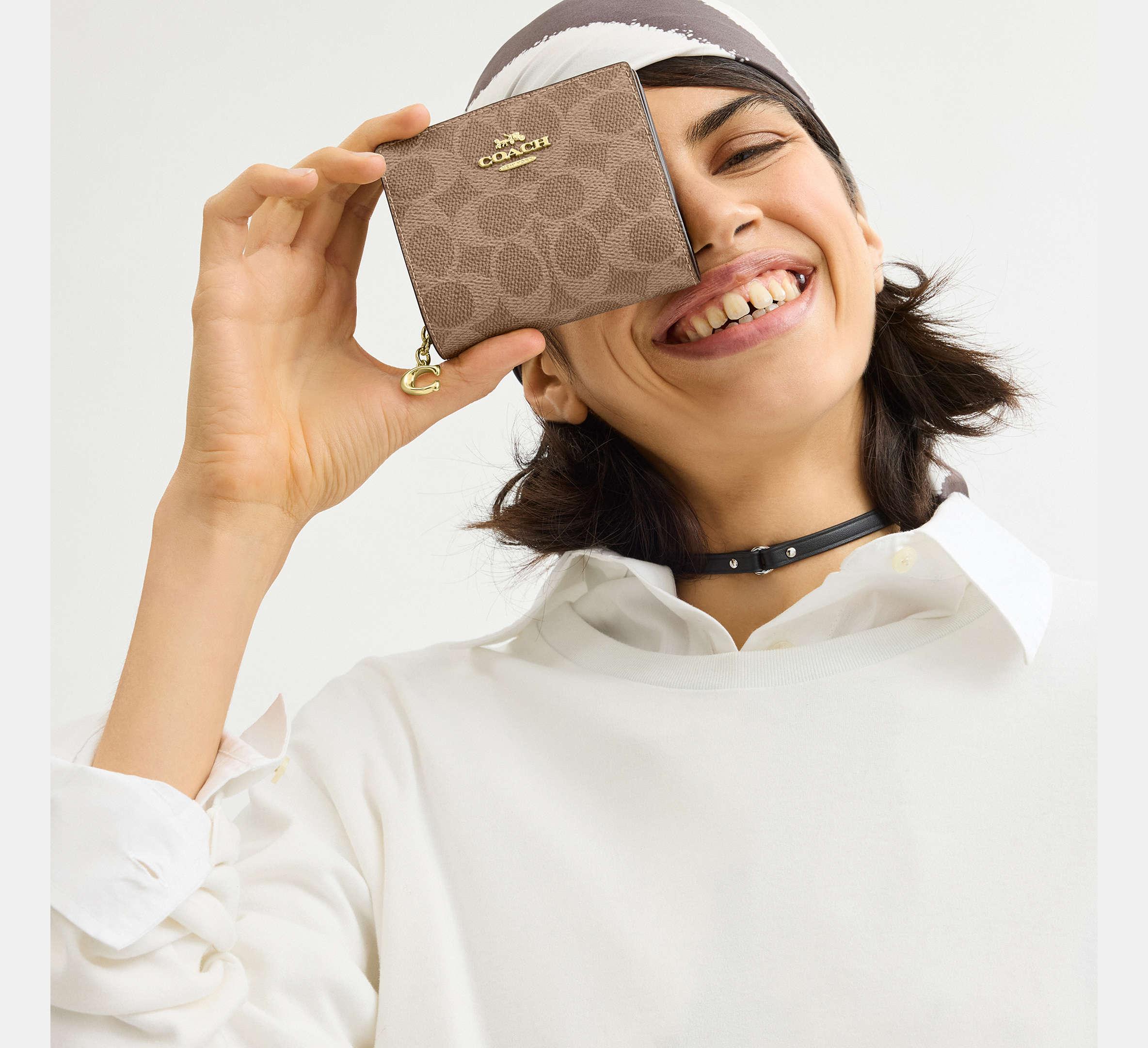 Coach Snap Wallet In Signature – Gold/Tan/Brown