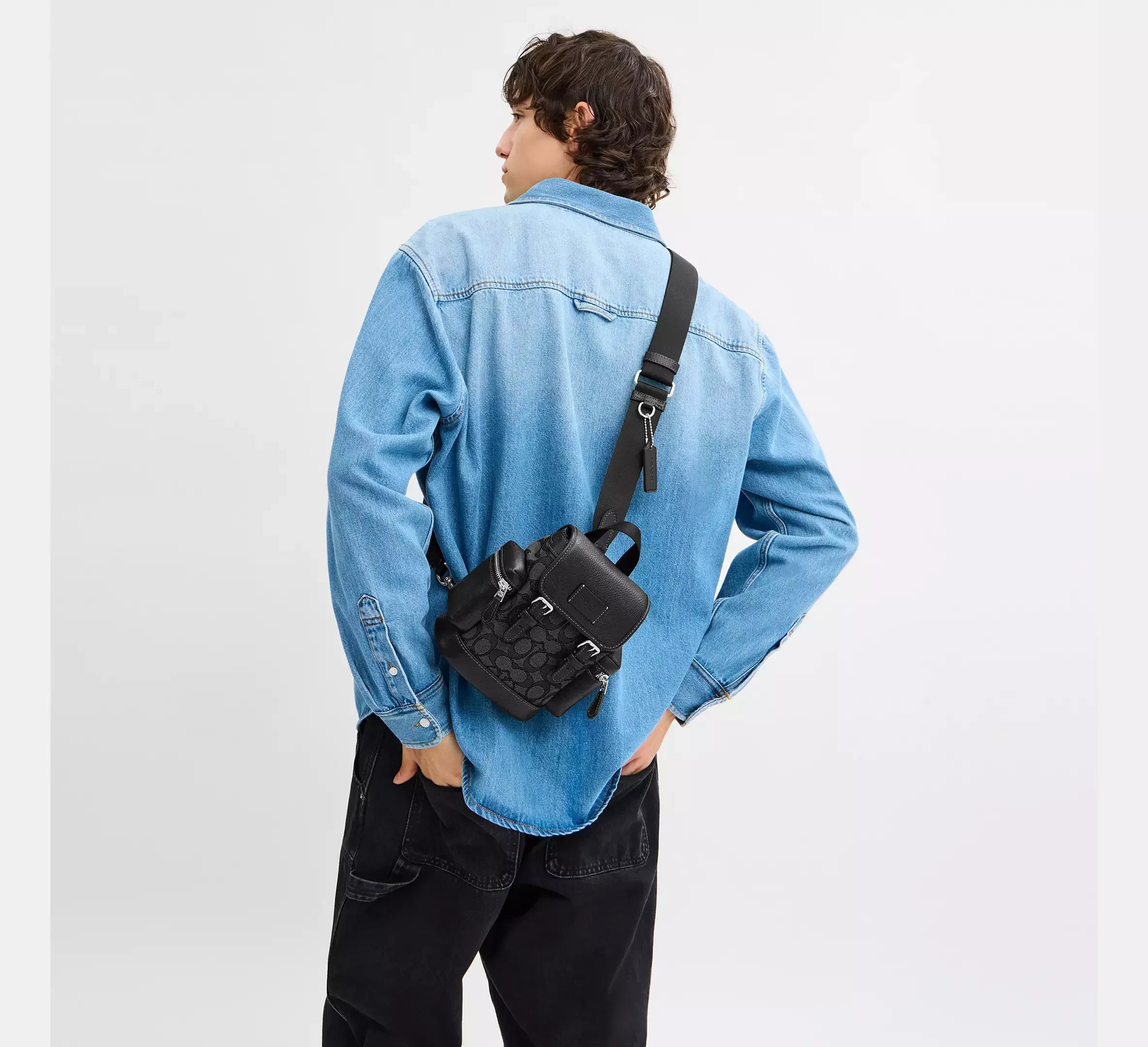 Coach Sprint Sling Pack In Signature Jacquard – Silver/Charcoal/Black
