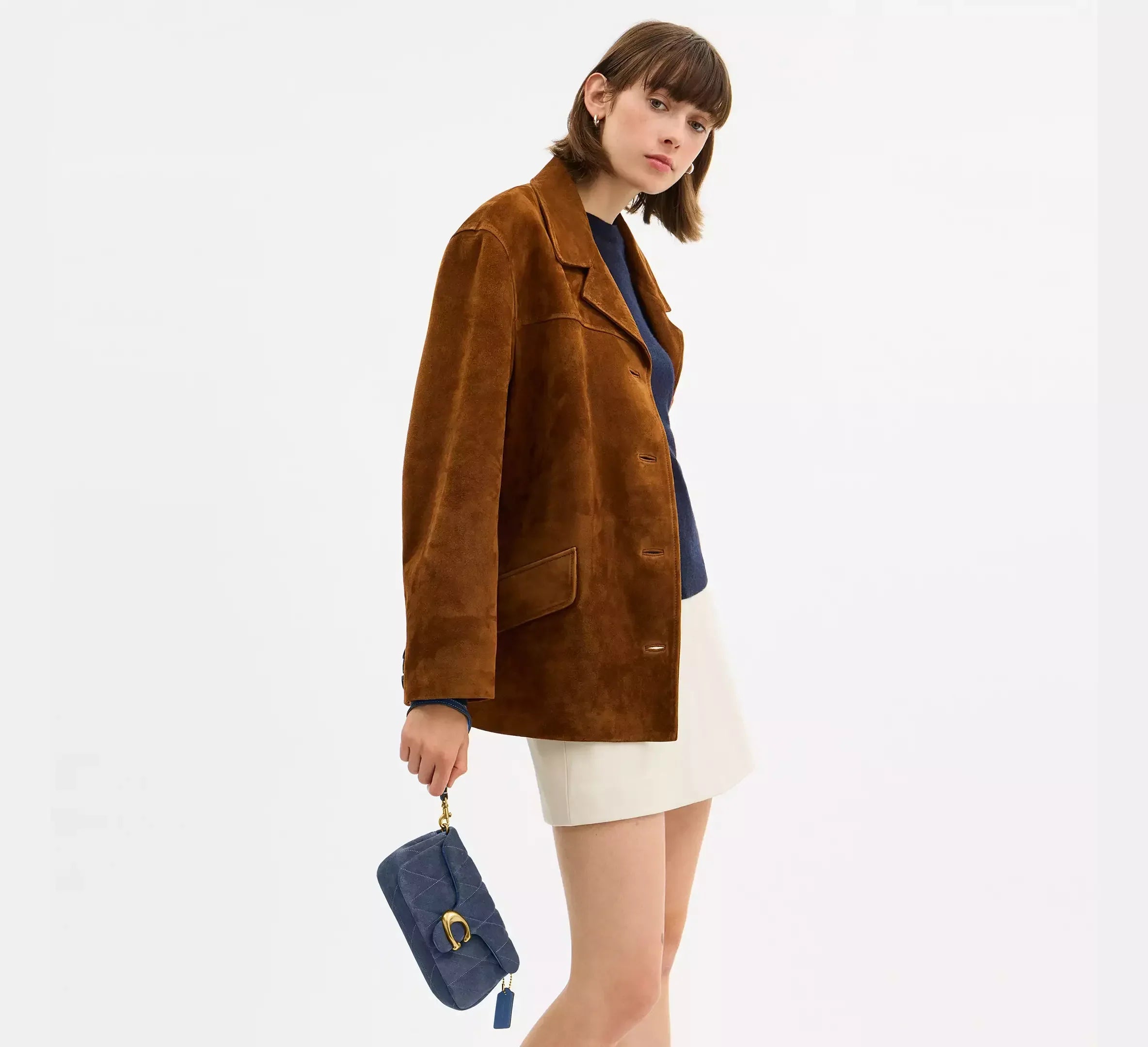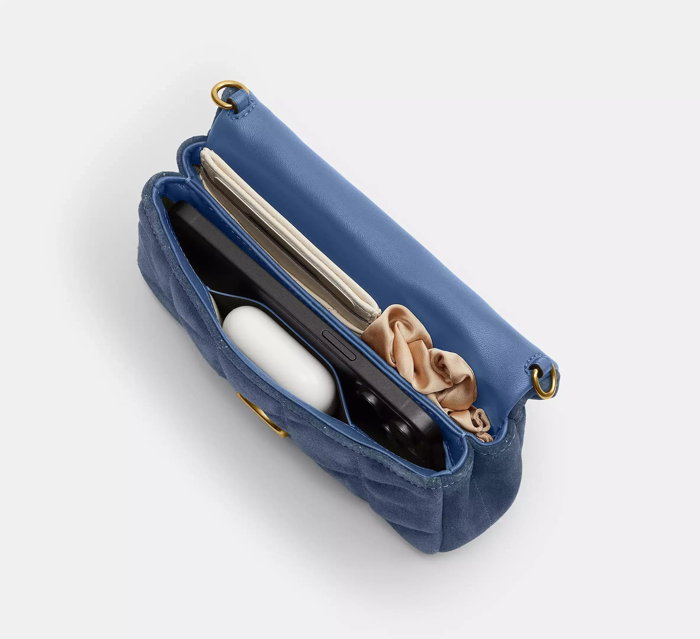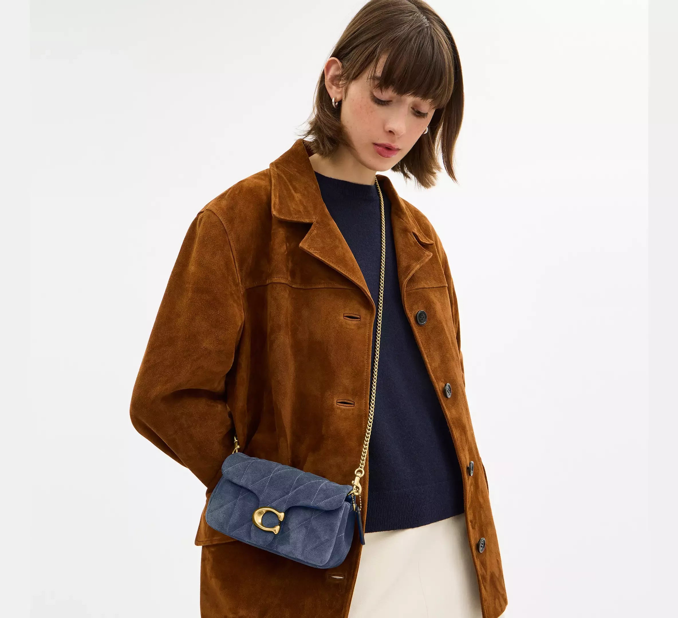 Coach Tabby Chain Crossbody Bag 19 With Quilting – Suede/Brass/Light Denim