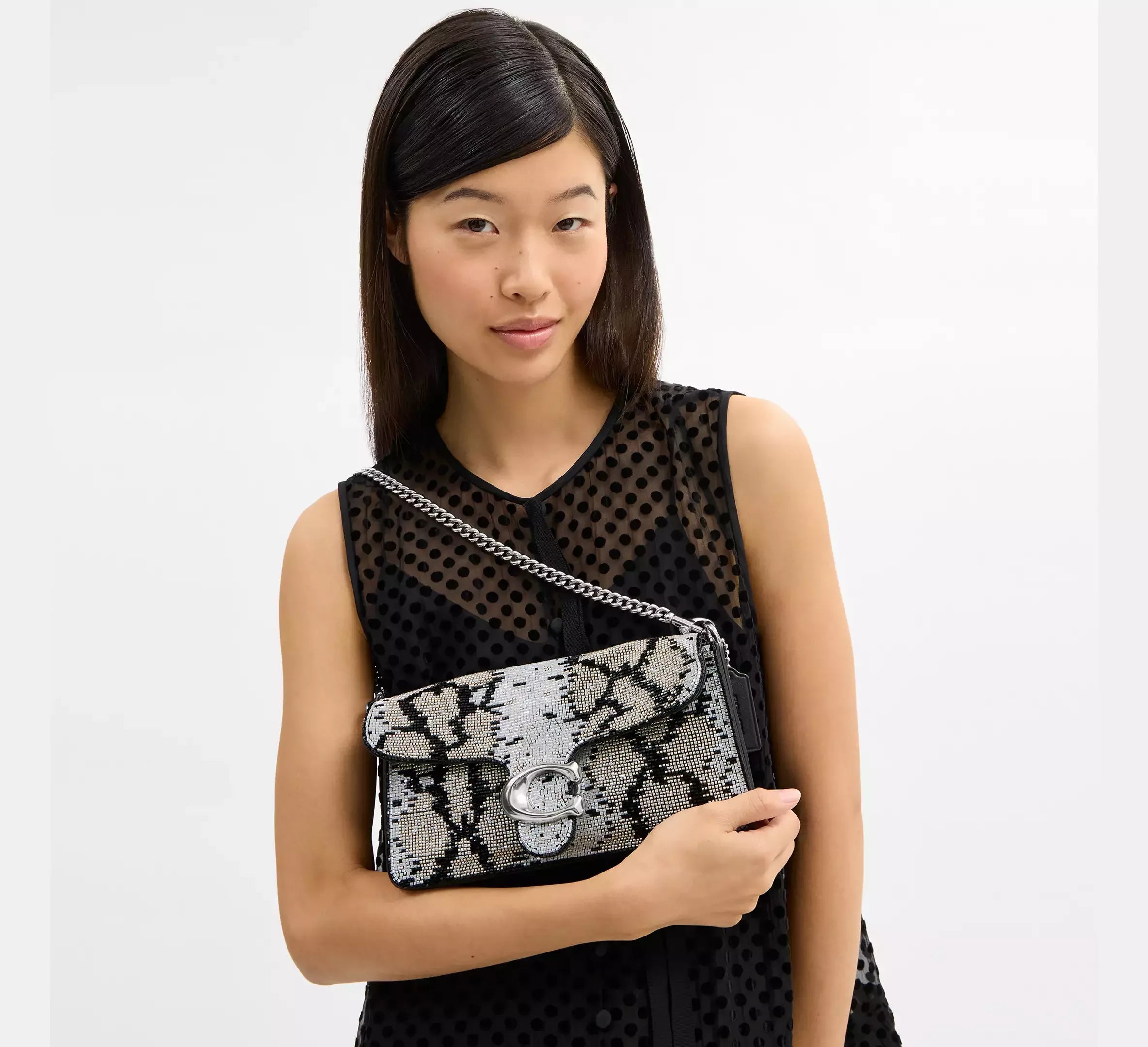 Coach Tabby Shoulder Bag 26 With Beaded Snake – Silver/Black