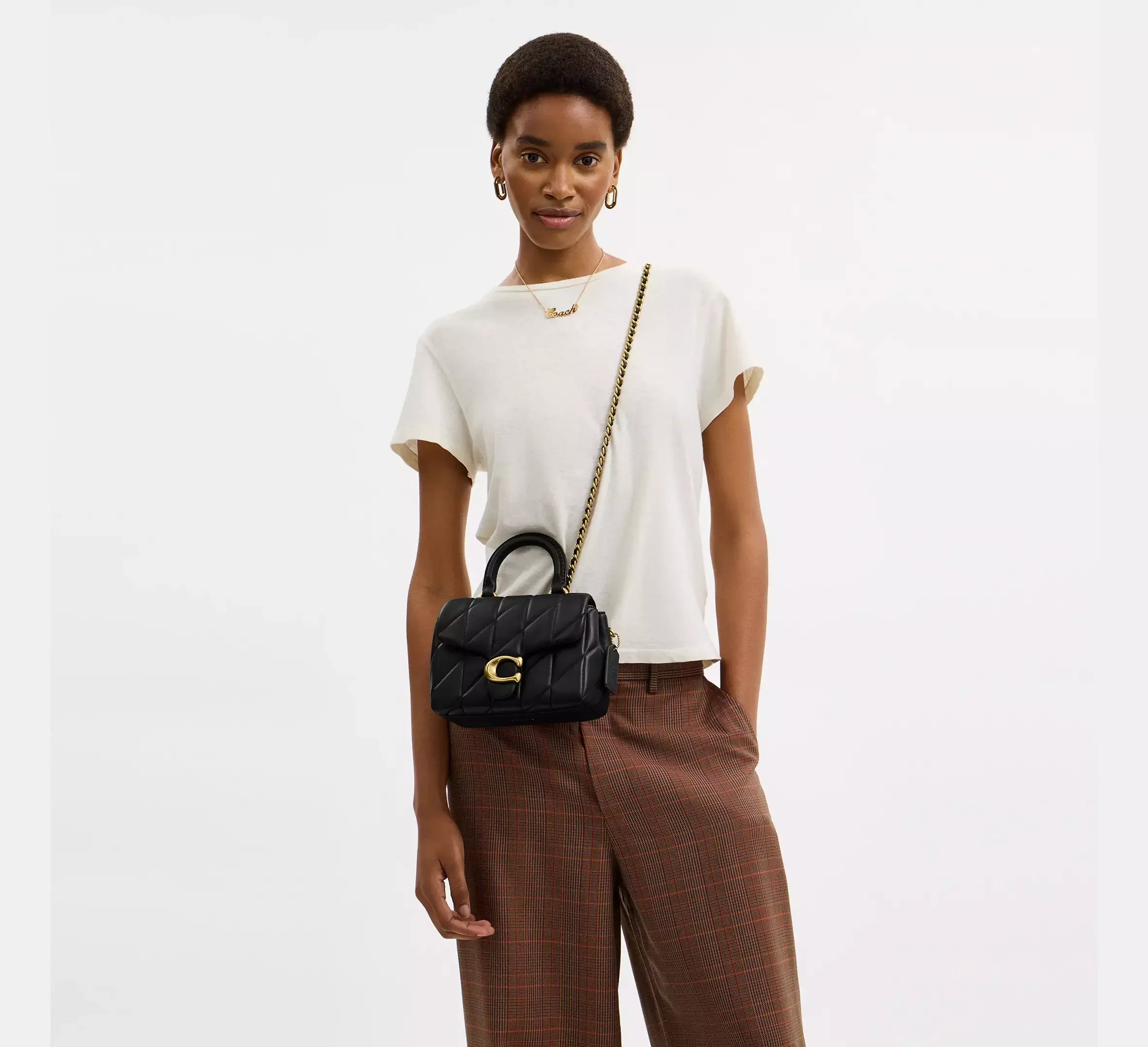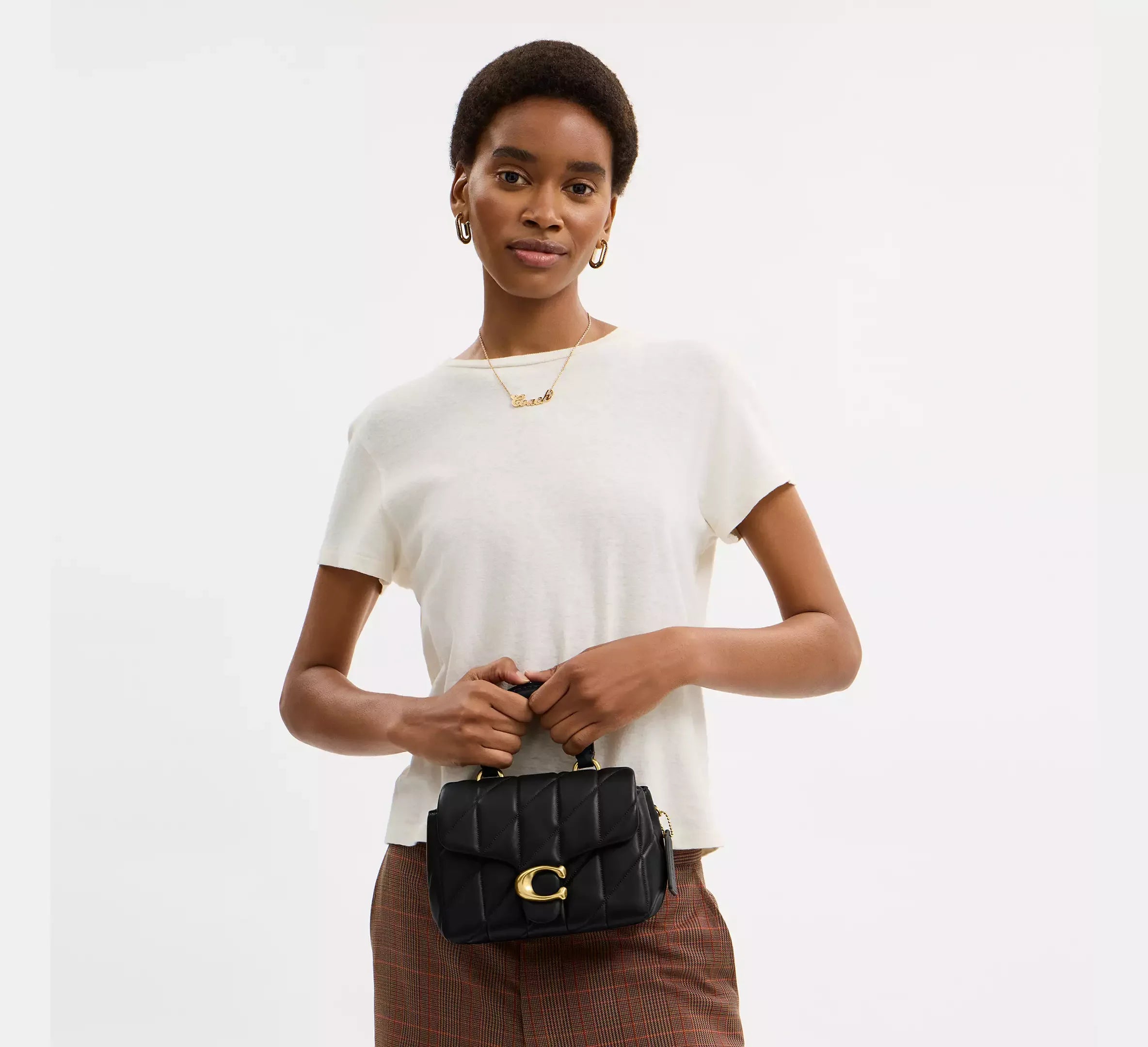 Coach Tabby Top Handle Bag With Quilting – Brass/Black