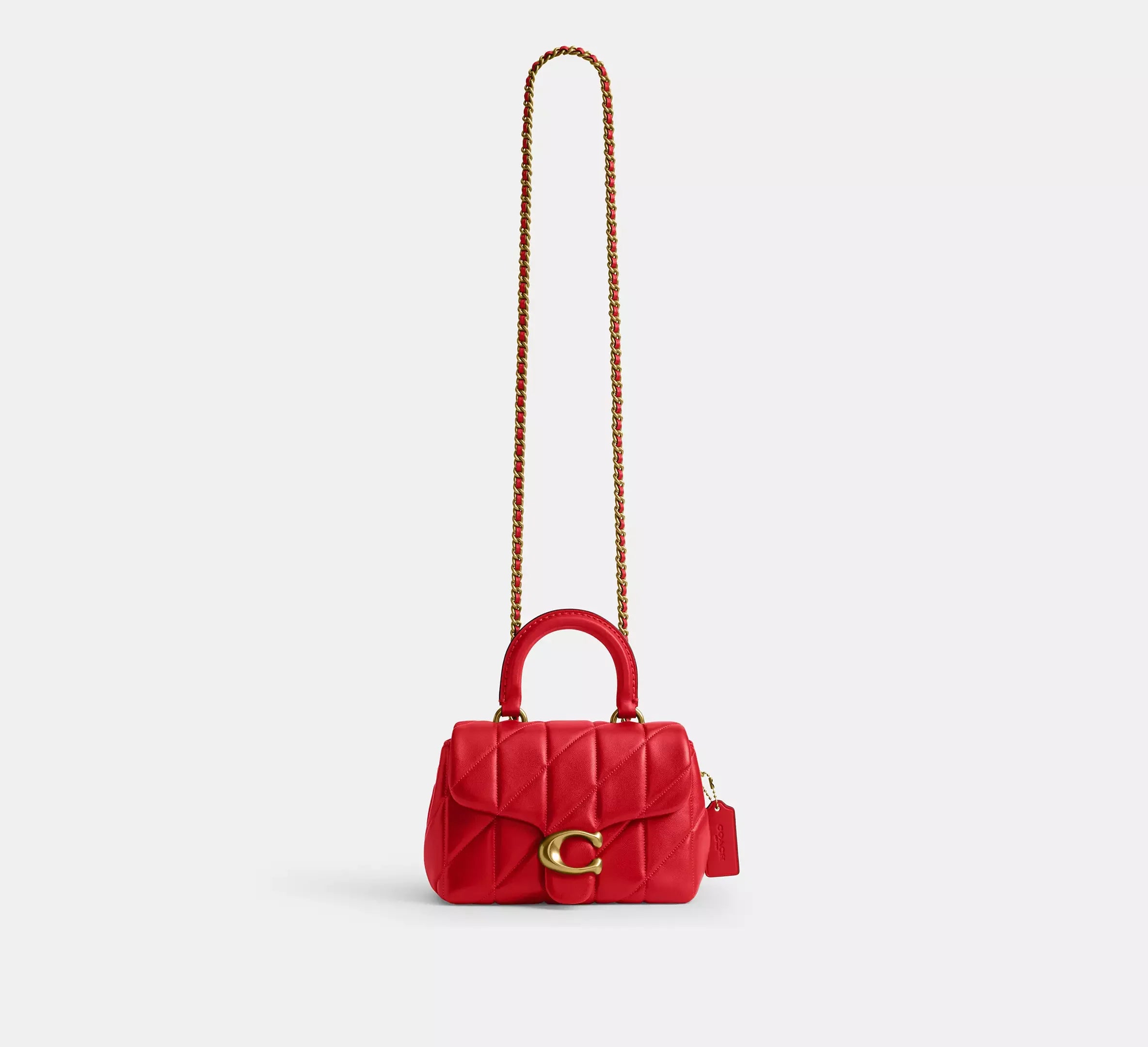 Coach Tabby Top Handle Bag With Quilting – Brass/Candy Apple