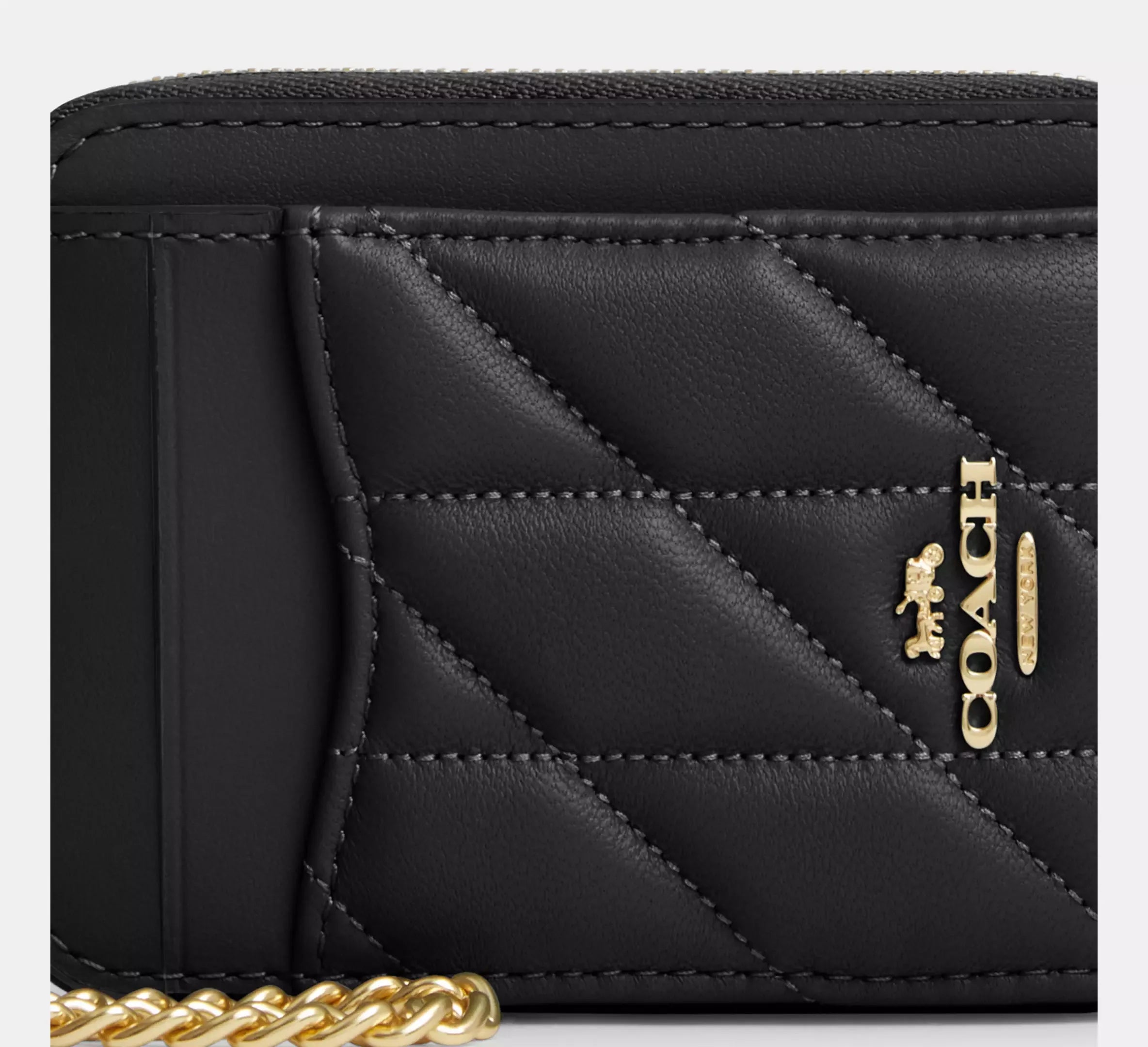 Coach Zip Card Case With Quilting – Gold/Black