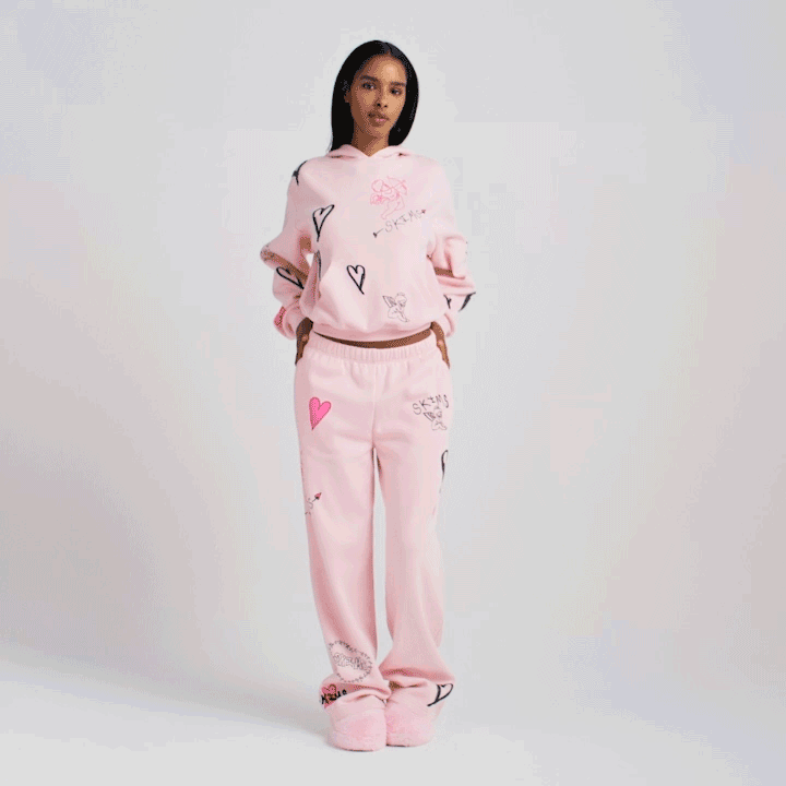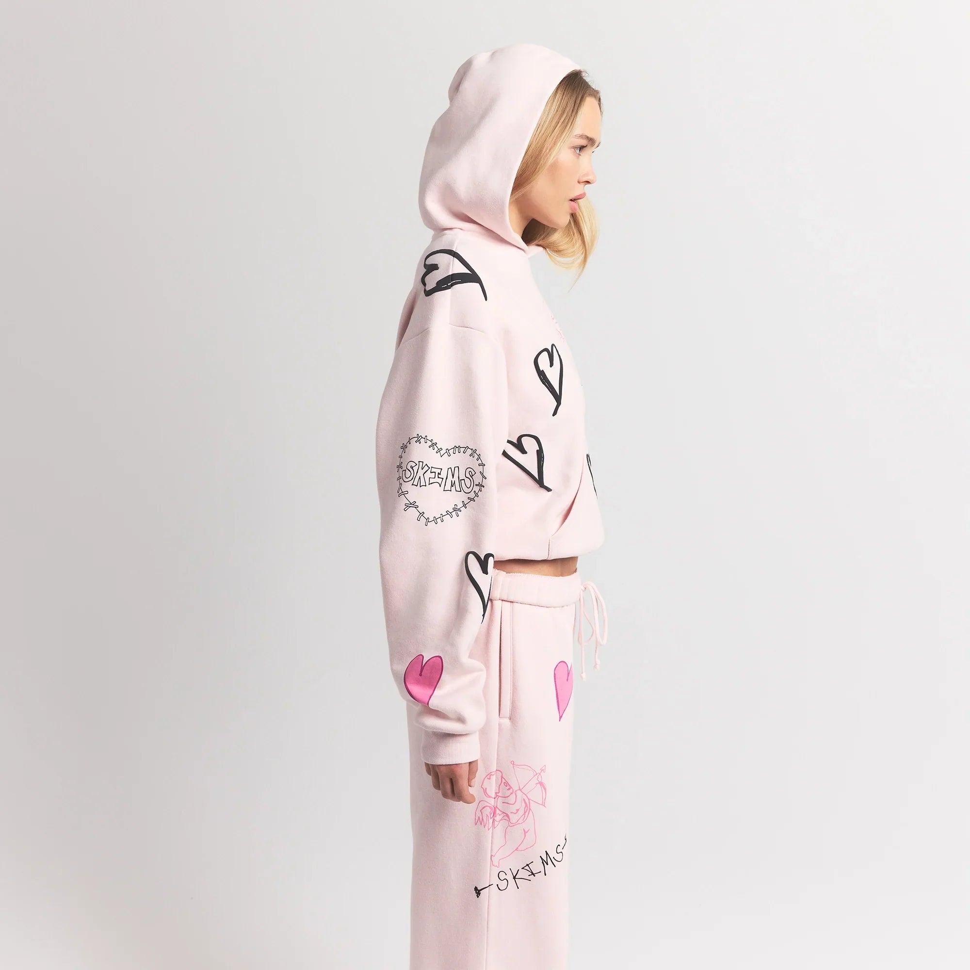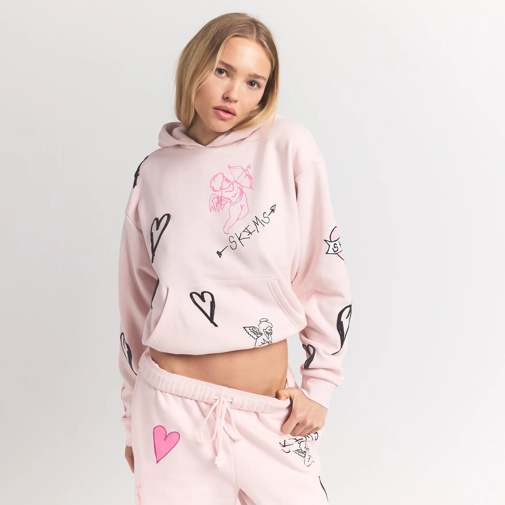 SKIMS COTTON FLEECE CLASSIC HOODIE | BARELY PINK ANGEL SKETCH